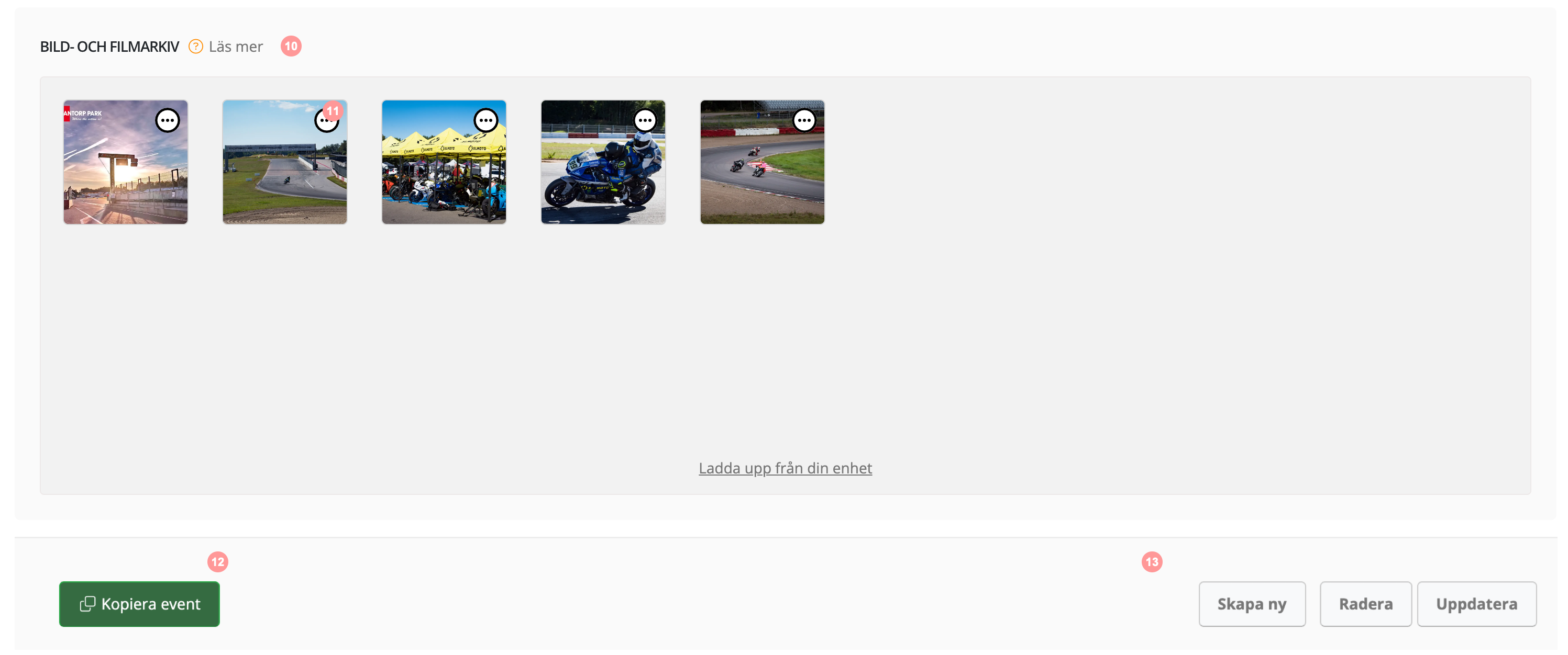 13. Längst ner finns knappar för att skapa ett nytt event, radera ett event eller uppdatera den information som du ändrat i någon av flikarna