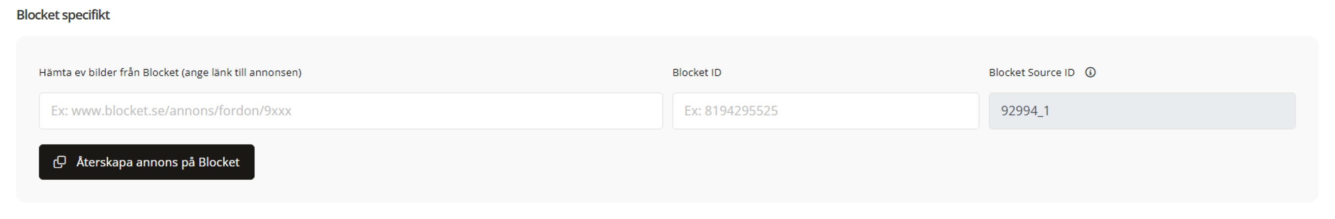 • Systemet letar efter source_id på Blockets annons som skapas när annonsen skapas på Blocket