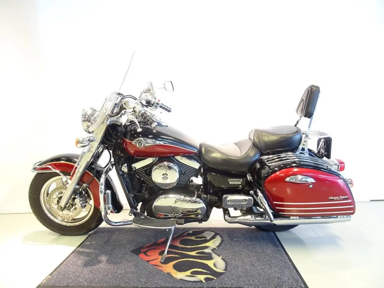 Stor service utförd av AVA vid 5875 mil, därefter servad årligen av tidigare ägare. 2 nycklar. Instruktions finns. Däcksskick: Fram 50%, Bagage räcke på väskor. Störfångare på framskärm. Hi way pegs. Kawasaki VN1500 Classic Tourer. VN1500CL. VN 1500 CL. VN 1600 CL. VN1600. Custom. Glidare. Garanti: 3 månaders SMR Garanti. Alla fordon finns i butiken. Reservation för felskrivningar.