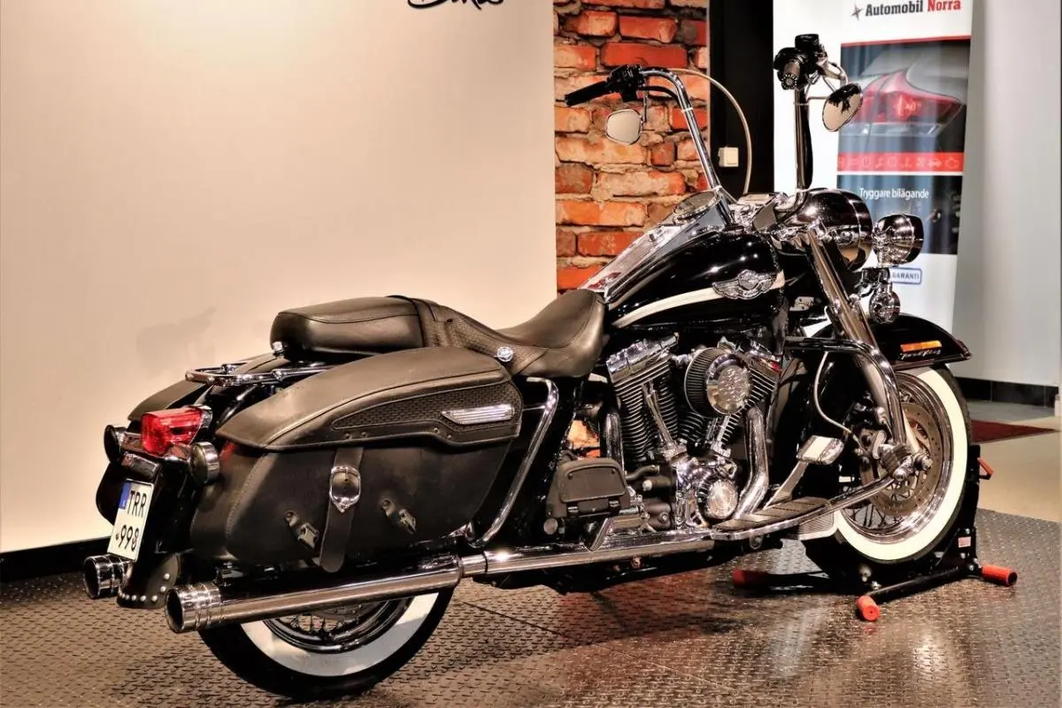 Nu har vi fått in en fin och välvårdad H-D Road King med raka pipor som låter riktigt bra! Jubileumsmodell 2003, Besiktigad tom 2023-05-31, Senast servad 2021-04-12 vid 6820 mil. Farthållare, Batteri. Bakhjul . Bromsbelägg bak. Bromsslangar fram + vätska. Gasvajrar. Luftnipplar (bromsarna). Tankpackningar. Stift. Reservation för felskrivning i text.MB