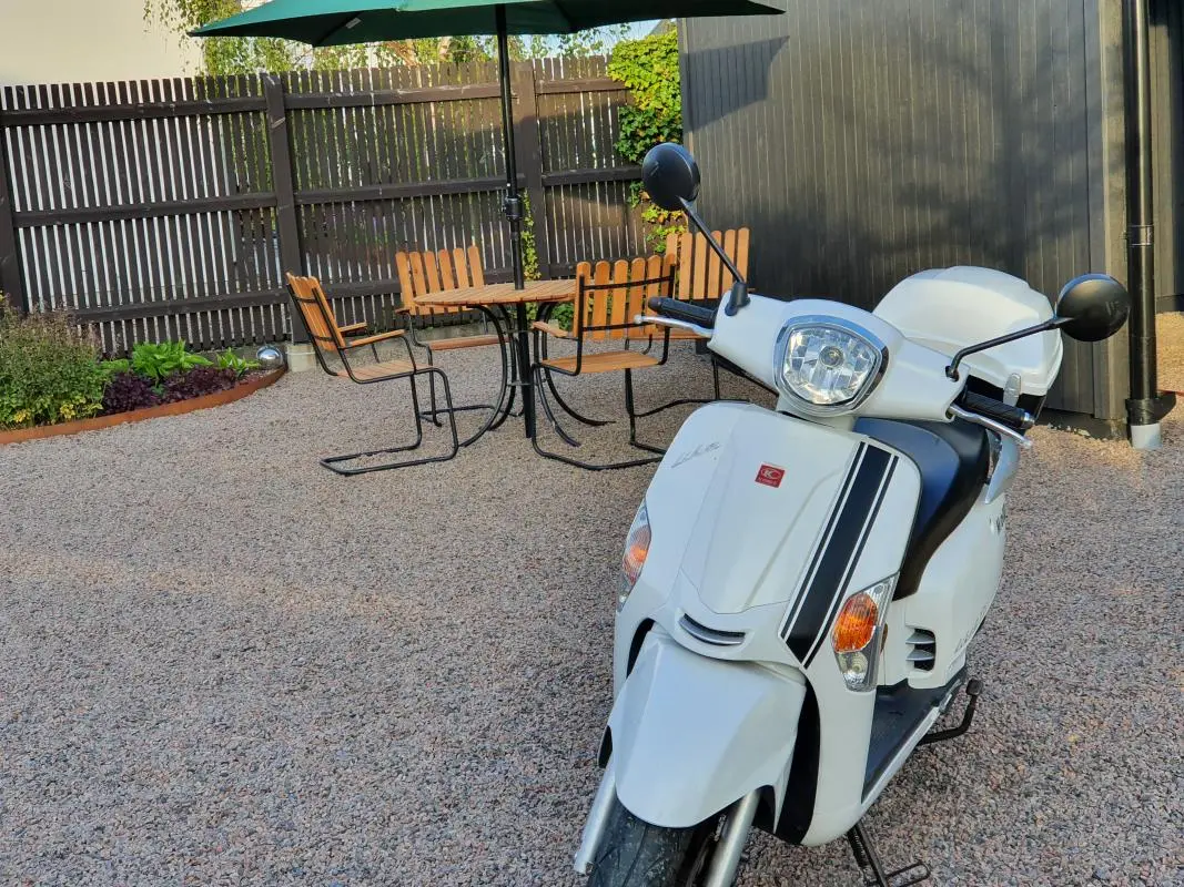 Scootern toppar runt 100 km/h och ligger väldigt bra på vägen. Perfekt som pendlarscooter eller för diverse turer med fru och barn i landskapet. Stor skillnad från motsvarande i 125cc utförande.
