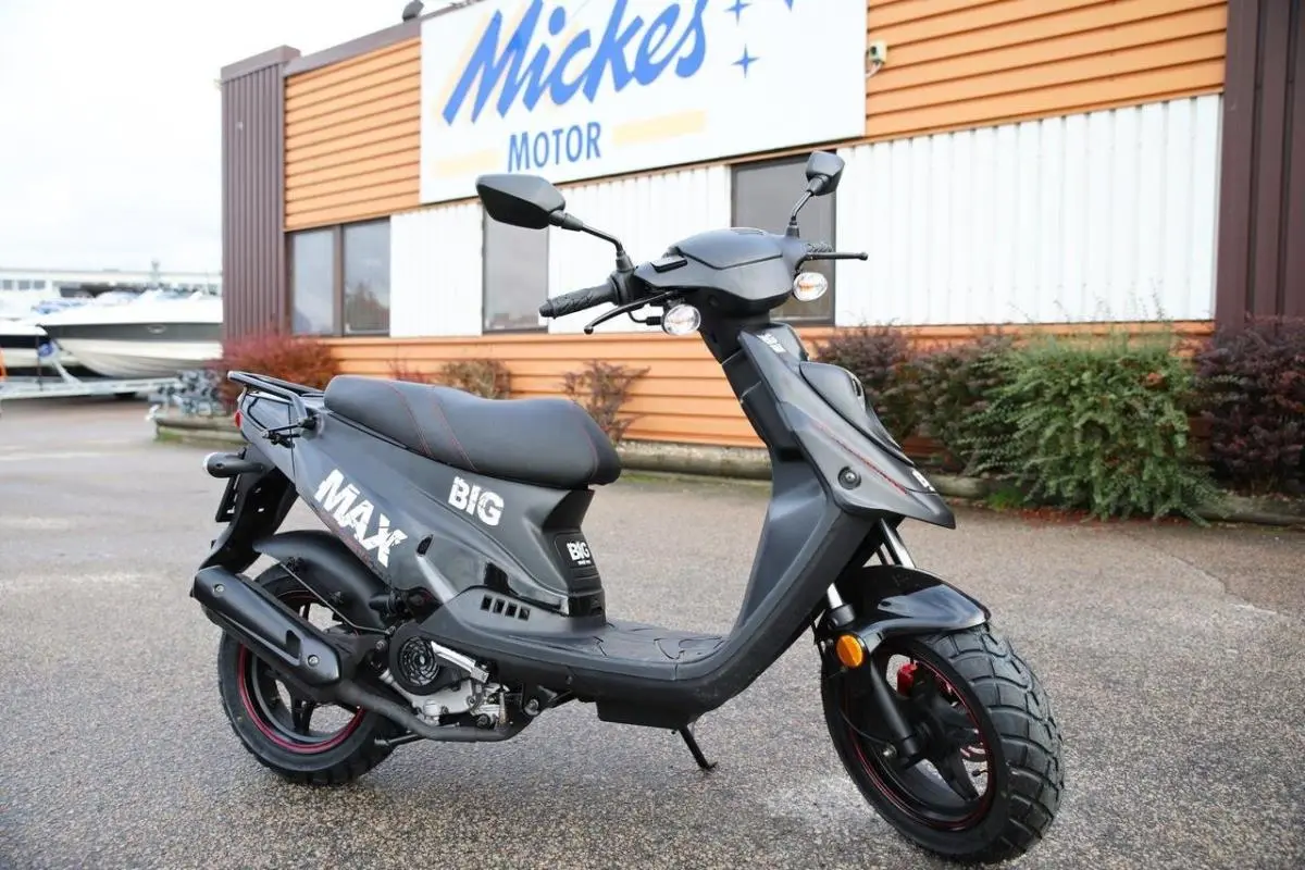 BigMax är MotoCR:s kraftkarl som med sin robusta konstruktion rullat på de svenska vägarna i ur och skur år ut och år in. Nytt för året är den kraftiga och rena fyrtaktsmotorn som sörjer för att ni åker tryggt och säkert även när förhållandena blir tuffa. BigMax finns även som klass 1 eller klass 2-moped. Vill du kunna köra på cykelbanor i stan väljer du BigMax som klass 2. För mer landsvägskörning i högre tempo väljer du BigMax i klass 1. MotoCR är det nya PGO/TGB med motorer som klarar de nya, miljövänligare Euro 4-kraven. Det innebär driftsäkra och rena 4-taktsmotorer eller eldrift. Moped klass: 1/2 Hastighet: 45/25 km/h Växellåda: automatisk Motor: 1-Cylindrig 4-takt, 3 hk Start: el och kick Tank: 5 liter Sadelhöjd: 78