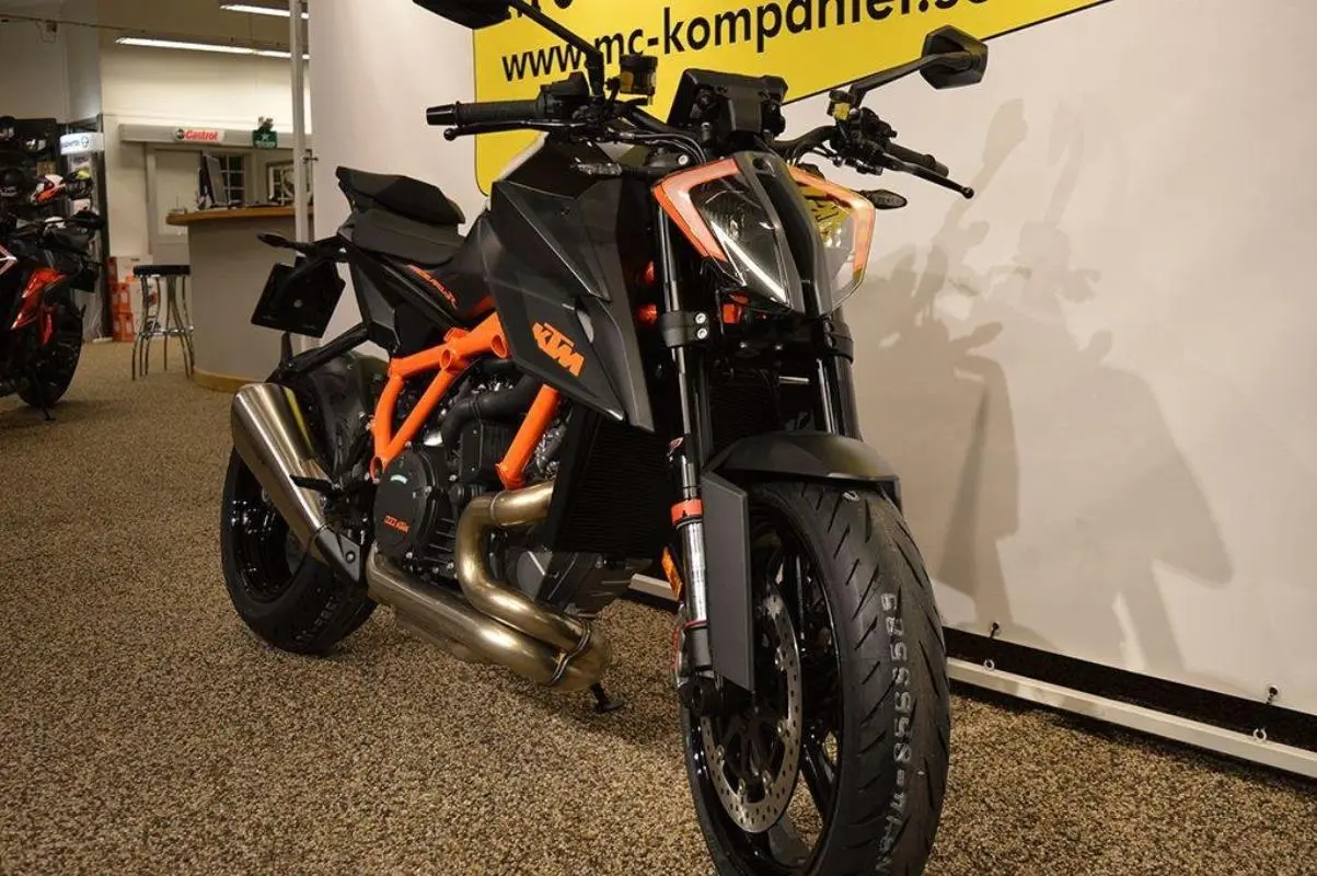 Finns hemma för omg leverans. Hela juni kör vi en räntekampanj på 1,99% på utvalda fordon! Kontakta oss för mer info.The BEAST är KTM´s värsting med sin 1301 cc LC8 w-twin motor som levererar hela 180HK och 140Nm i vridmoment samtidigt som den är 6 kg lättare än fjolårets modell. Den nya ramen är baserad på KTM´s racehoj RC8 och torrvikten ligger på 189kg. Med denna hoj kan vi garantera en kul upplevelse med massor av adrenalin! Uppdatera din 1290 SD R med tillval som Quickshift+ / MSR och Trackpack. Vi tar gärna inbyte och hjälper till med finansiering. Vill du ha din nya hoj hemlevererad så löser... vi även detta. Vi har en stor tillbehörsavdelning för både dig och din mc. På fordon yngre än 5 år lämnar vi 3 månaders garanti, på fordon äldre än 5 år lämnar vi 1 månads garanti. Sök. 1290r superduke 1290superduke superduke1290 superduker