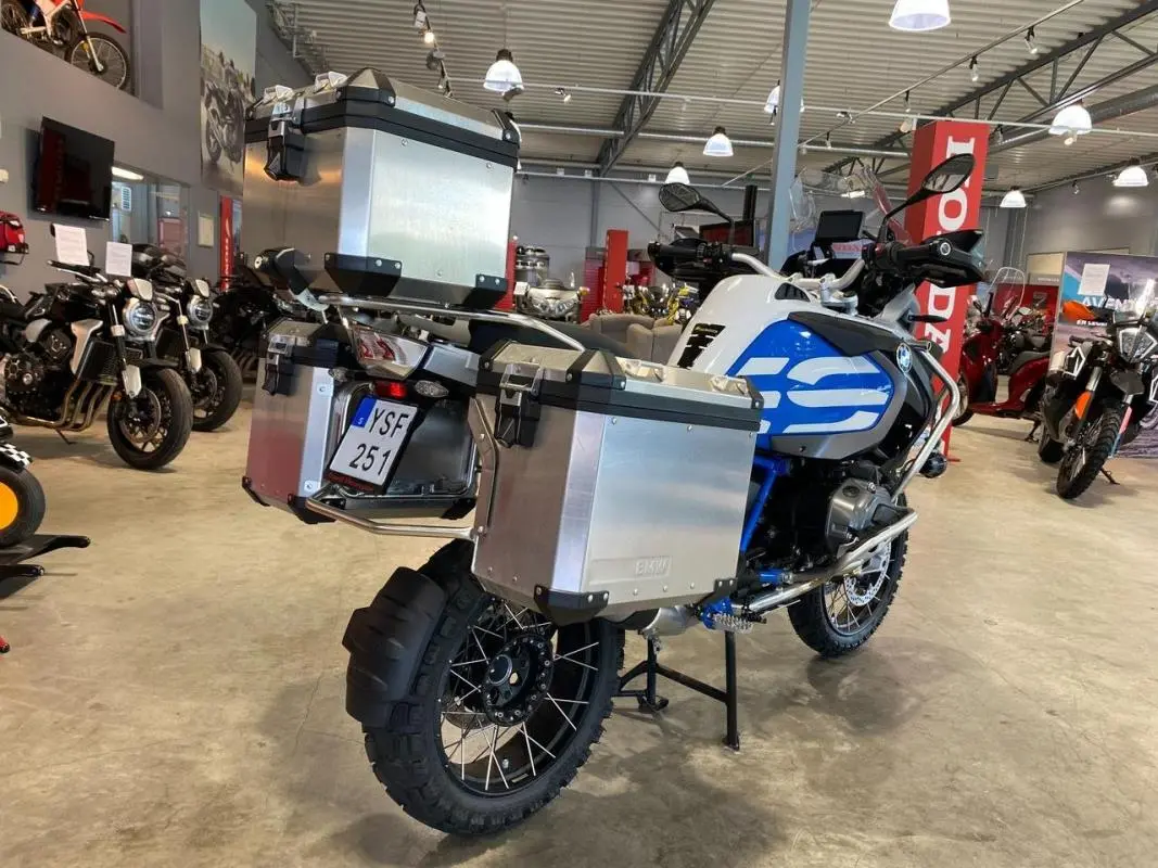 Utrustad med: Alu toppbox, extra vindavisare händer, motorbågar, dimljus, DTC antispinn, Dynamic ESA elfjädring, LED ljus, keyless ride, daytime running lights, växelassistent pro, driving modes pro, comfort pack, touring pack, dynamic pack, hillstart control, BMW Navi V, Rallye färg, värmehandtag, RDC däcktryckskontroll, farthållare, ABS pro, handskydd, SOS knapp, ekerfälgar, TFT display, bluetooth, kylarskydd, cylinderskydd.