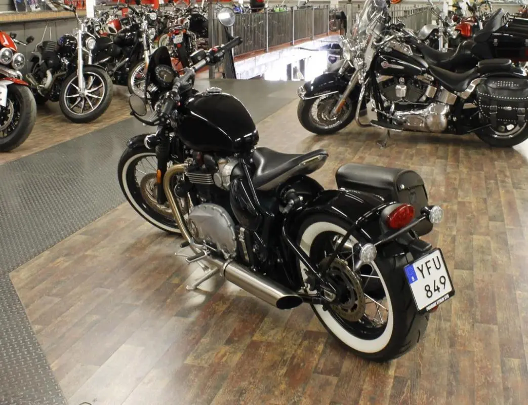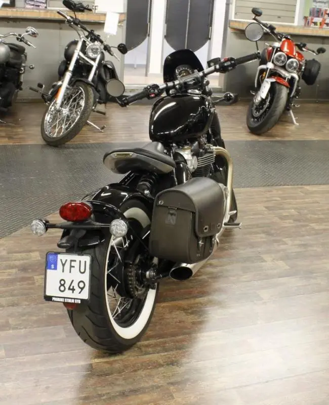 Triump Bonneville Bobber , Reg nr: YFU849. Besiktigad t.o.m. 2023-06-30. Max effekt: 78 Hk,6 L. Med ProBikes märkesförsäkring via Svedea så får du marknadens bästa premier och villkor. ( https://www.svedea.se ) Vi hjälper dig att finansiera ditt mc köp via Santander Consumer Bank. Välkomna till Probike Sthm Syd.