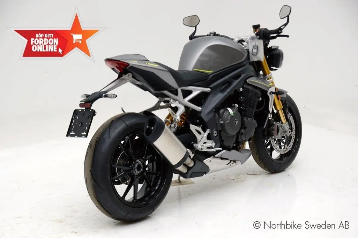 Nya Triumph Speed Triple 1200 RS nu i butiken. Den mest kraftfulla starkaste och snabbaste Speed Triple någonsin. Helt ny 1160 kubikstrippel på 177hk och 125nm. Totalt 10kg lättare än tidigare. Full LED-belysning. 5" TFT display. Optimerad kurv ABS. Traction controll. Front Wheel Lift Control, Cruise Control mm. Regnr:RYO434
