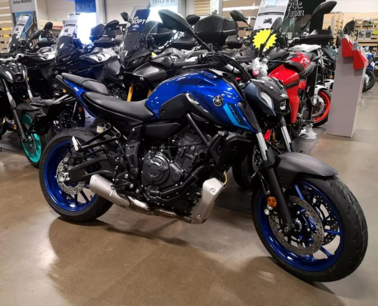 Med över 125 000 sålda enheter har MT07 behållit förstaplatsen i Hyper Naked klassen ända sedan den lanserades. Det är omöjligt att inte älska en av Yamahas bästsäljande modeller, med dess CP2 motor med 690cc och stort vridmoment, kompakta och smidiga chassi samt oerhörda mångsidighet. 35Kw A2 mellanklass körkort.Nästa generations design.LED projektorbelysning.2 cylindrig EU5 kompatibel CP2 motor med 690cc.Större skivbromsar fram för uppgraderad bromsförmåga.Offensiv körställning.Inverterad LCD mätare.LED... blinkers.ABS.Kontaka oss för leverans då inte alla färger och modeller alltid finns i lager.