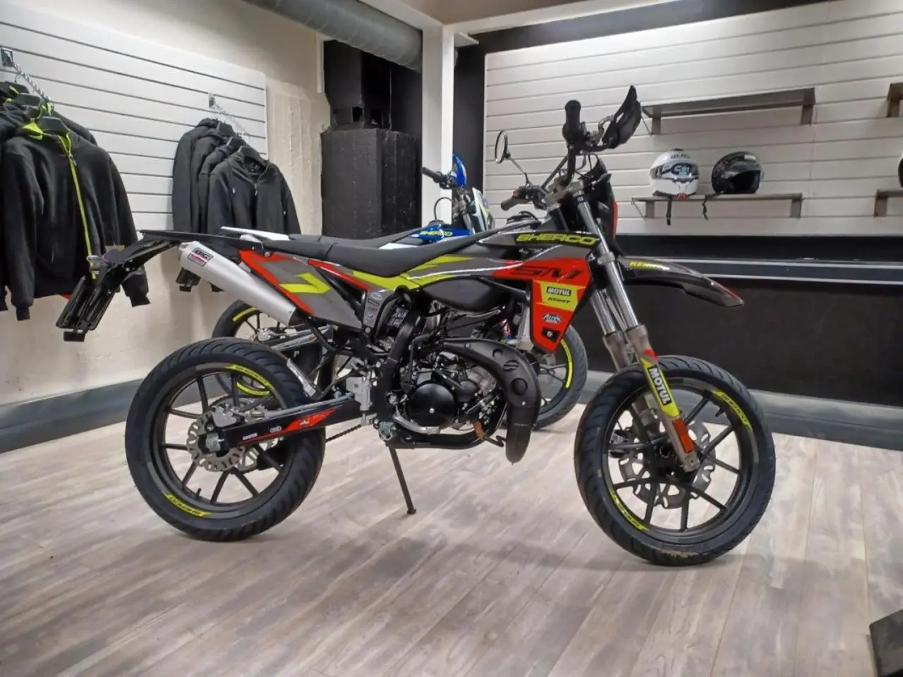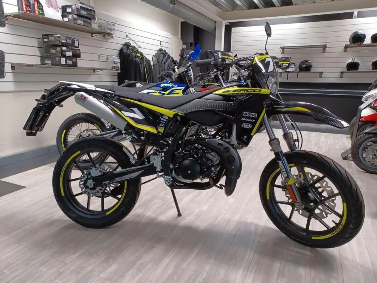 Sherco's mopeder är välutrustade från start, Minarellis driftsäkra AM6 motor och 16mm förgasare ser till att du har kraft och driftsäkerhet. Vi har både Offroad (SE) modeller och Supermotard (SM) utöver detta så finns hojarna i både "R" (basmodell) och "RS" version där RS har riktiga ekrade fälgar, Neken styre mm.SM som står för SuperMotard med sina 17" hjul och feta däck har vi en Super moped för gatåkning. Finns i 3 olika färger Silver (den svarta), Red One och till sist Factory som har den häftiga Blå Factory Grafiken tagen direkt från Sherco's Enduro modeller så utstrålar den Racing!