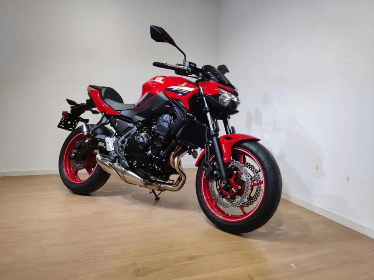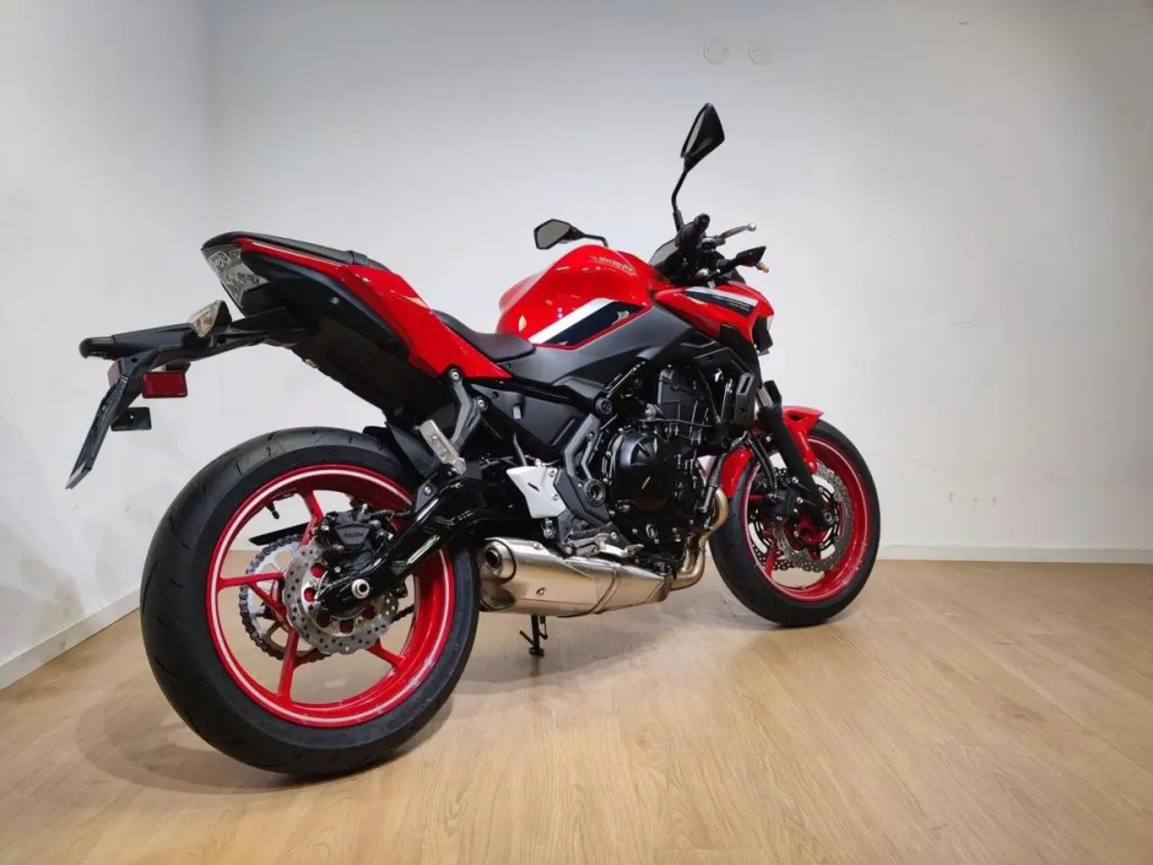 Denna Z650 med sitt smala chassi och sin responsiva, tvåcylindriga motor är en stor favorit bland förare på alla nivåer. Utrustad med all LED-belysning, en TFT-display och smartphone-anslutning ger Z650 energi till sinnena och inspirerar varje körning. De mörkblå och silverfärgade detaljerna framhäver den röda färgen, och liksom tidens modeller är Z-emblemet och Kawasaki-logotypen guldfärgade, vilket gör att dessa modeller skiljer sig ytterligare från sina standardmodeller. Här erbjuds även möjlighet att få den som A2.