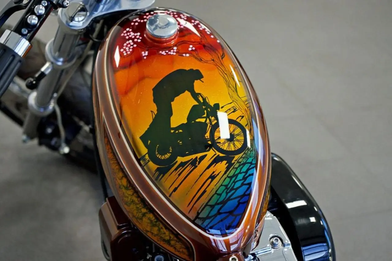 Svensksåld Harley Davidson 1200 Sportster Chopper Custombyggd av Fogell Customs. Custom lack av Håkan Lindberg, Customgjord Sadel i Skinn & Mocka, 265 mil sedan ombyggnad av motor (inklusive kolvar), Luftintagsplåt graverad av Susanne Staaf, Renoverat toplock (Hellinge Racing), Originalfälgar i fint skick, Chassi rullat cirka 3000 mil, Bör ses på plats.