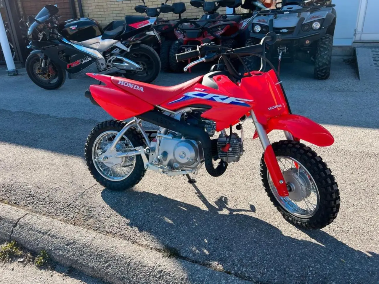 Honda CRF50F är den perfekta nybörjarhojen för barn som vill prova på motocross. Den lilla maskinen har en körglad och driftsäker luftkyld fyrtaktsmotor på 49 kubik med praktisk automatkoppling som underlättar att komma igång med körningen. Nybörjare brukar också känna sig trygga med de små 10-tumshjulen och den låga sadelhöjden. Till 2022 uppdateras CRF 50F med färgsättning och dekaler från storasyskonen CRF250R och CRF450R. CRF 50