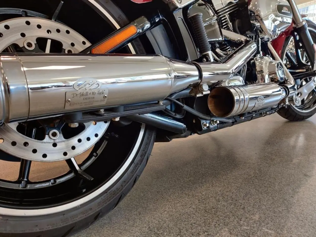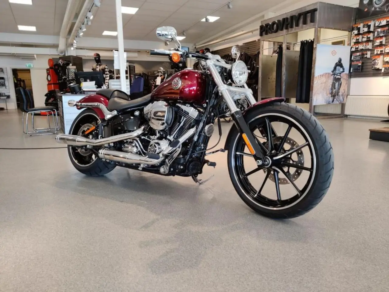 Vi har nu fått in en Breakout från 2016 i kanonskick och med rätt utrustning. Kittad med bland annat justerbara Jekyll & Hyde avgassystem och lejonkula så får nästa ägare en komplett hoj.