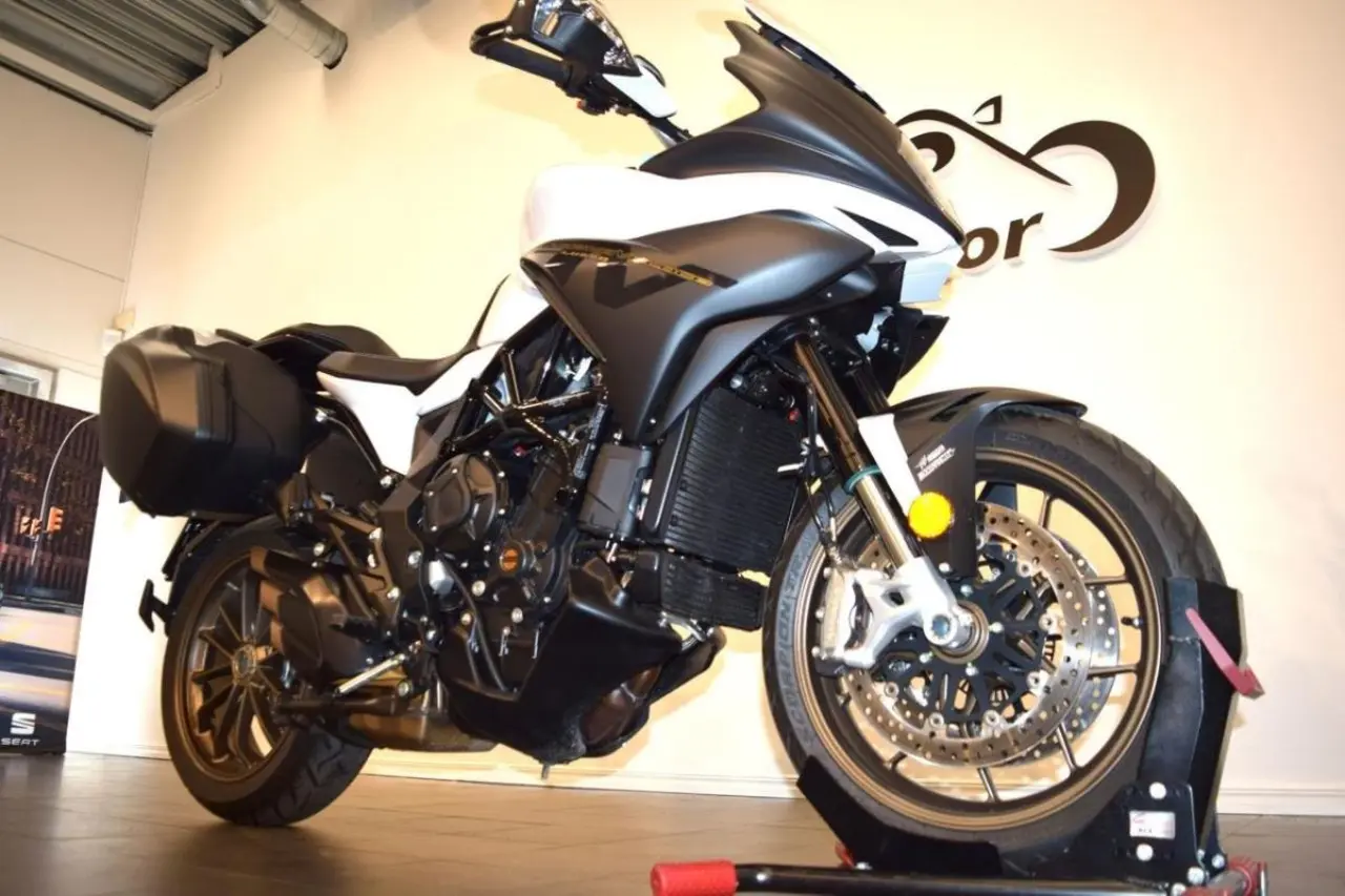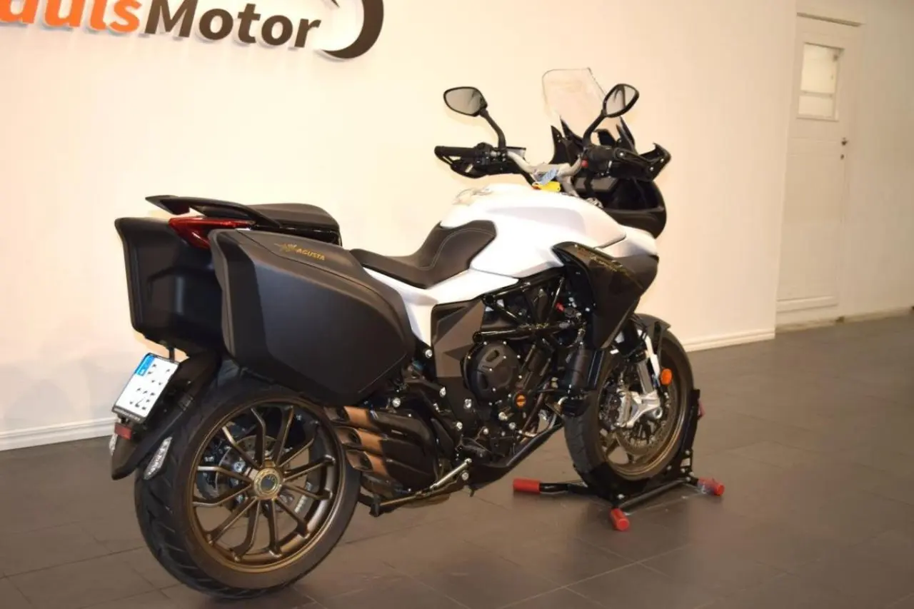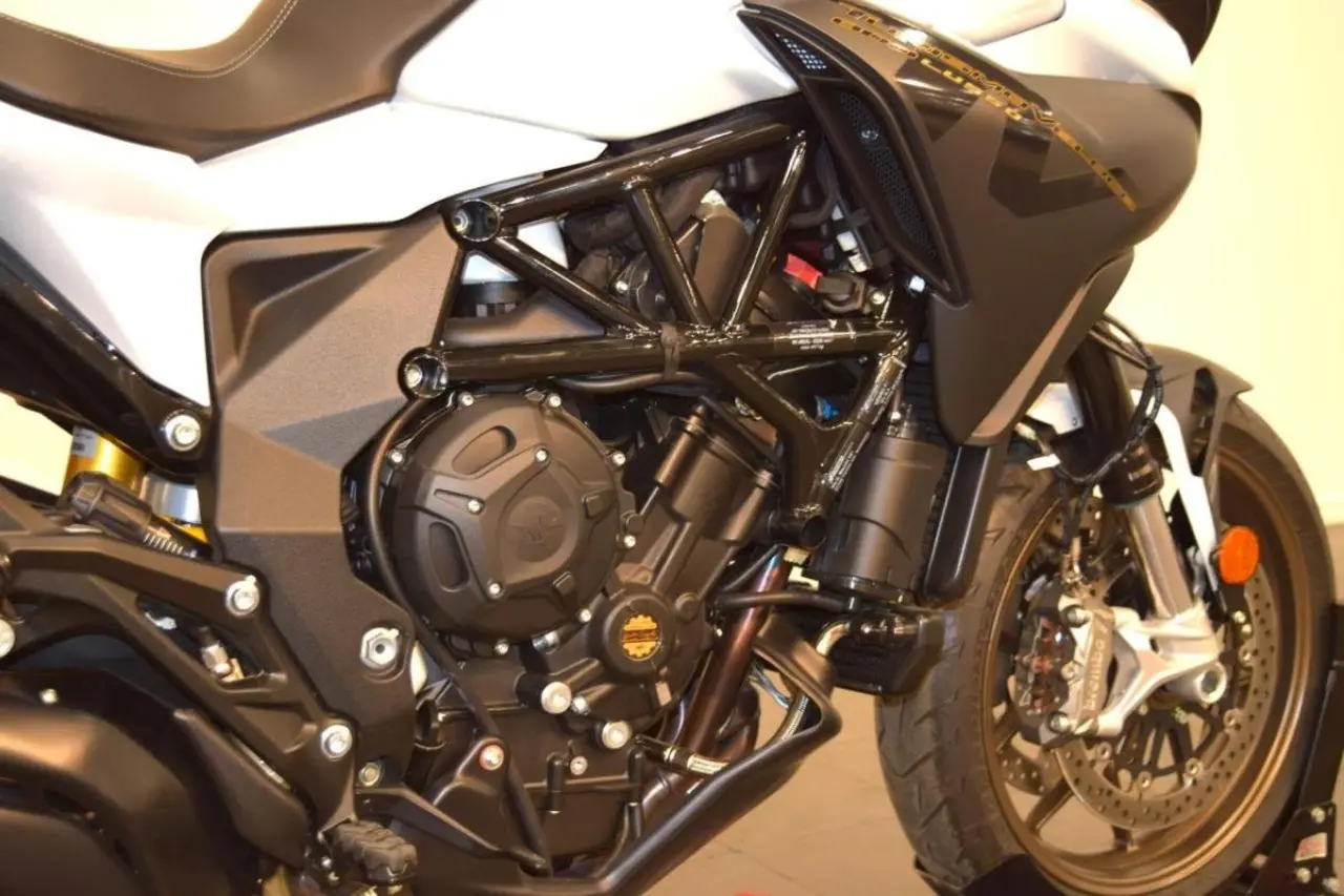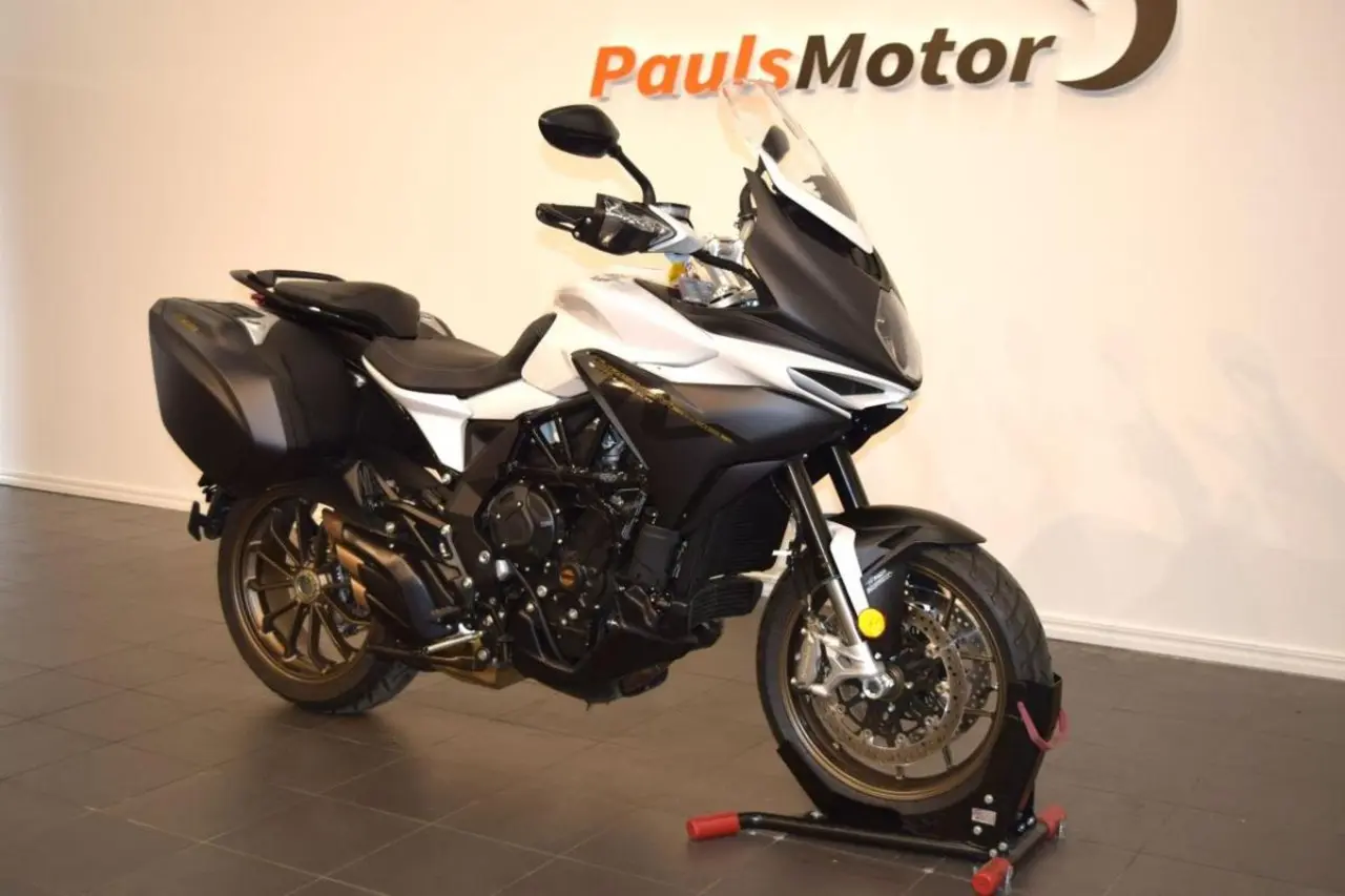 Lusso-modellen har värmehandtag, centralstöd och sidoväskor 34 l som standard. Motor: Rak trecylindrig, 798cc. Effekt: 110 hk. Vridmoment: 83 Nm vid 7, 600 rpm. 90% av vridmomentet uppnås redan vid 3, 800 rpm. 6-växlad manuell Körlägen: Ja. Ride by wire: Ja. Traction controll: Ja, justerbar 8 lägen. Driving mode, Sadelhöjd: 850 mm. Torrvikt: 192 kg. Bränslevolym: 21, 5 liter. MV Agusta Turismo Veloce. Touring. Långfärd. Multistrada. Africa Twin. DL 1000, DL1000.