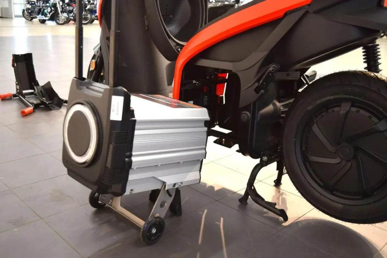 Batteriet är urtagbart och kan enkelt tas med för att sättas på laddning vart som helst - den kan även användas till att ladda andra enheter! Du kan också ladda batteriet då det sitter på plats i scootern. Man ansluter då batteriet till ett vanligt uttag.