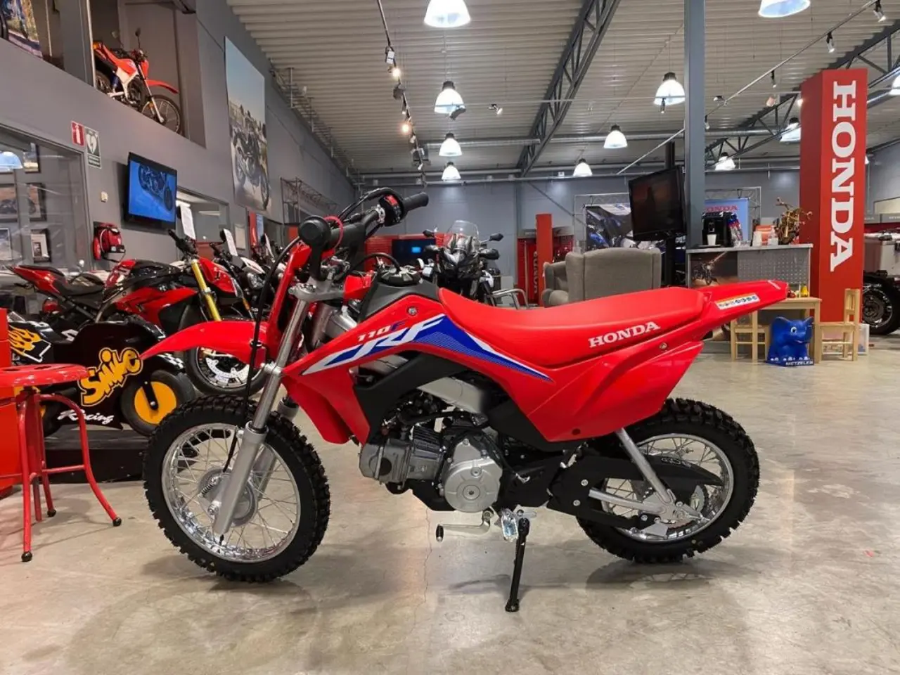 Till 2022 uppdateras CRF110F med färgsättning och dekaler från storasyskonen CRF250R och CRF450R.