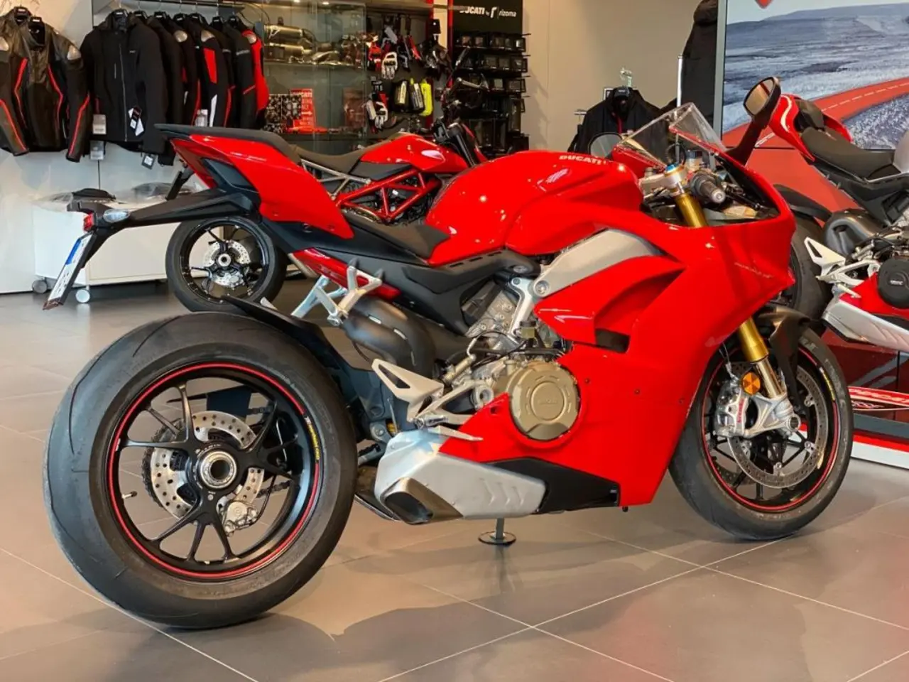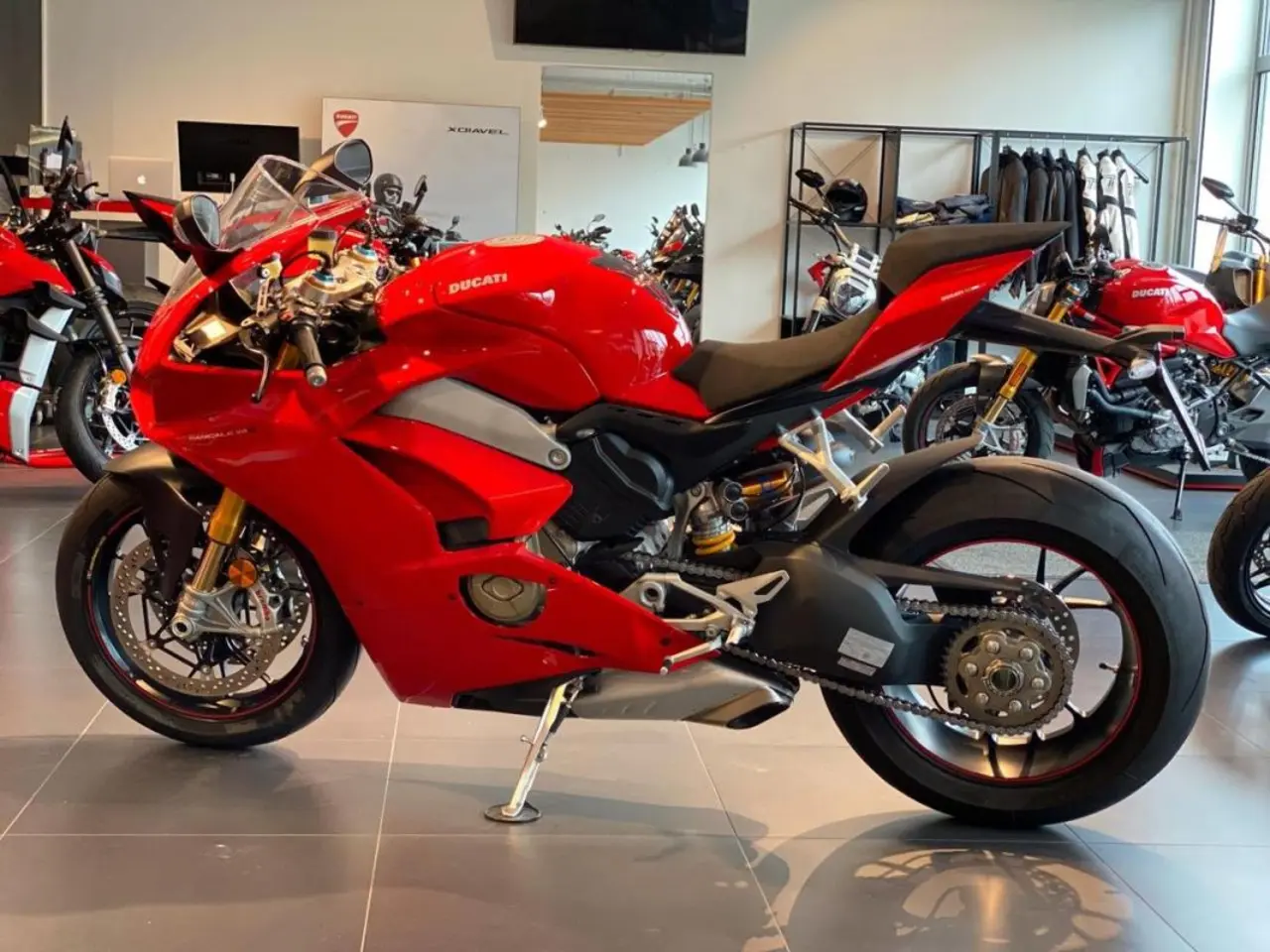 Panigale V4S nyservad och i originalskick. Elektronisk fjädring från Öhlins. 3 körlägen beroende på körstil.