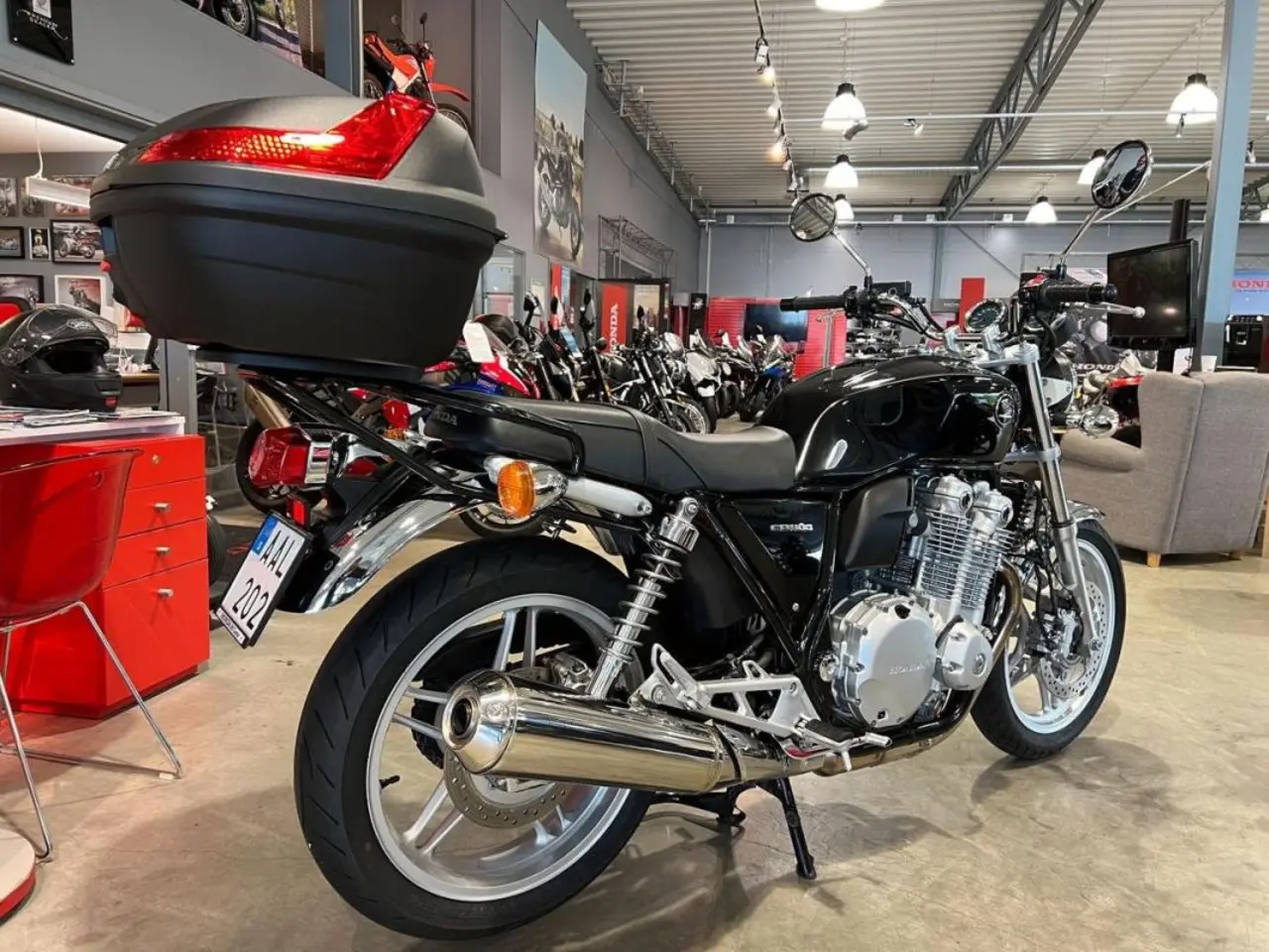Utrustad med: Pakethållare. toppbox, centralstöd.