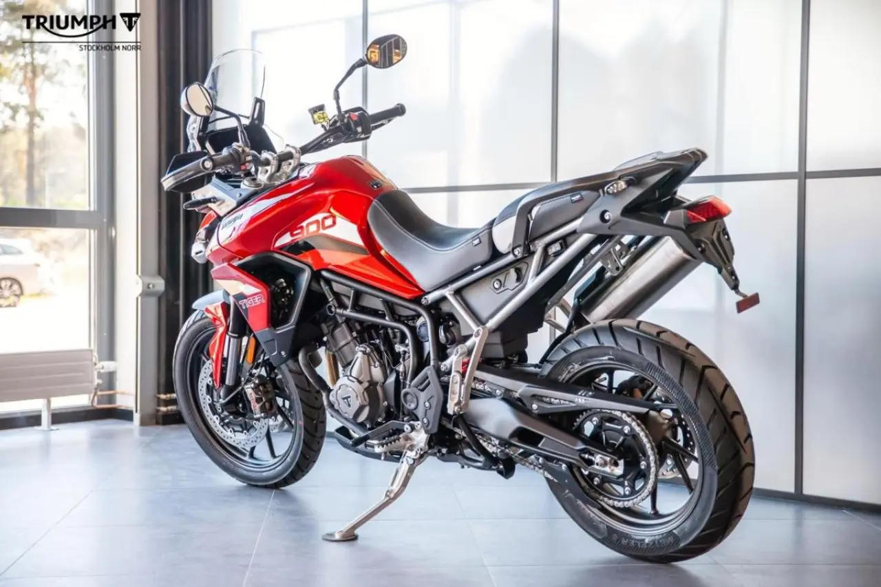 I Tiger 900-motorerna sitter en nyutvecklad trippel på 888 kubik med förändrad tändföljd (1,3,2), vilket adderar mer morr och karaktär till motorcykeln. Motorn levererar 95 hästkrafter och 87nm vrid.