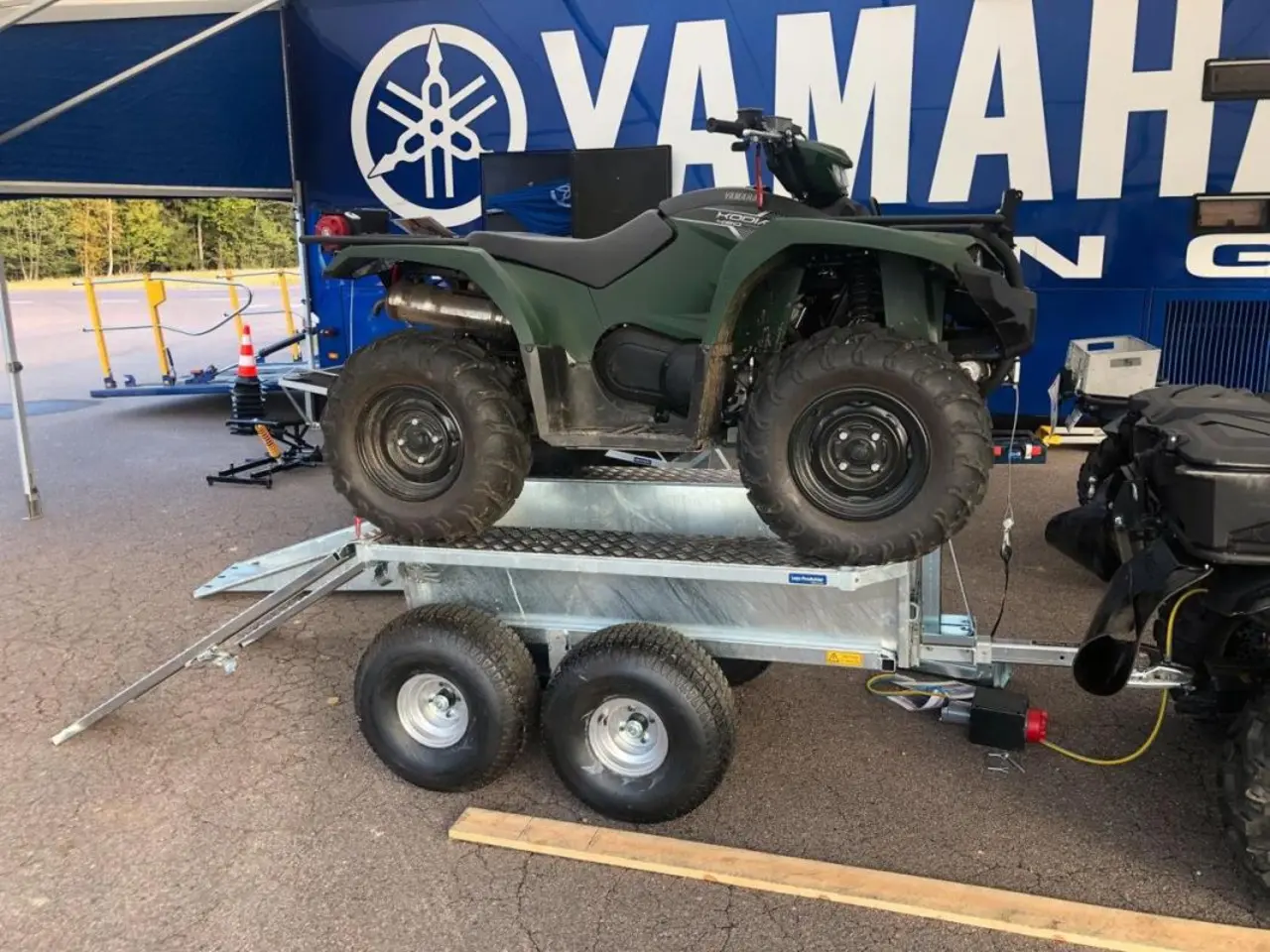 Kampanjpaket med Yamaha Kodiak 450 EPS 2023 samt Leja KOMBIVAGN. Kodiak 450 EPS difflås samt en fin skogsgrön färg. Leja har tagit fram en ny kombivagn. Vagnen har boggi och lämpar sig väl för terrängen. Den har nedsänkt flak med integrerade ramper som gör att den fungerar bra att lasta ris, grenar löv. Den har även en stor lastramp vilket gör att den fungerar utmärkt som villebrådsvagn. Lastar enkelt älg/gris mm. En annan finess är att den är ihopskjutningsbar vilket gör att ett komplett ekipage med atv och vagn kan lastat på ett släp ca3, 9m långt. Vagnen kommer finnas för påseende. Paketet är... komplett med en extra winch och trådlös fjärrkontroll. Tänk på att det kan vara lång leveranstid.