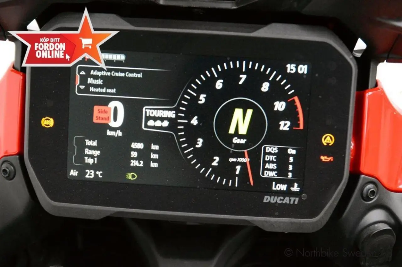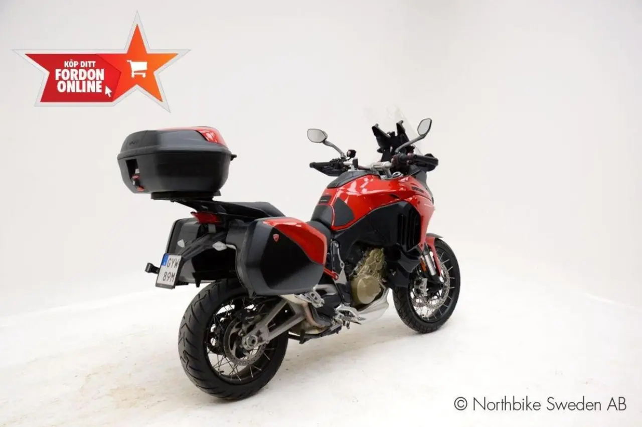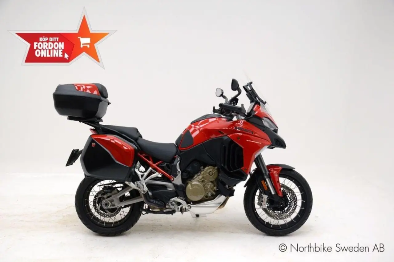 Nu har vi fått in en superfin Ducati Multistrada V4 S Travel & Radar Spoked Wheels med tillagd Topbox. Reg:GYW89M