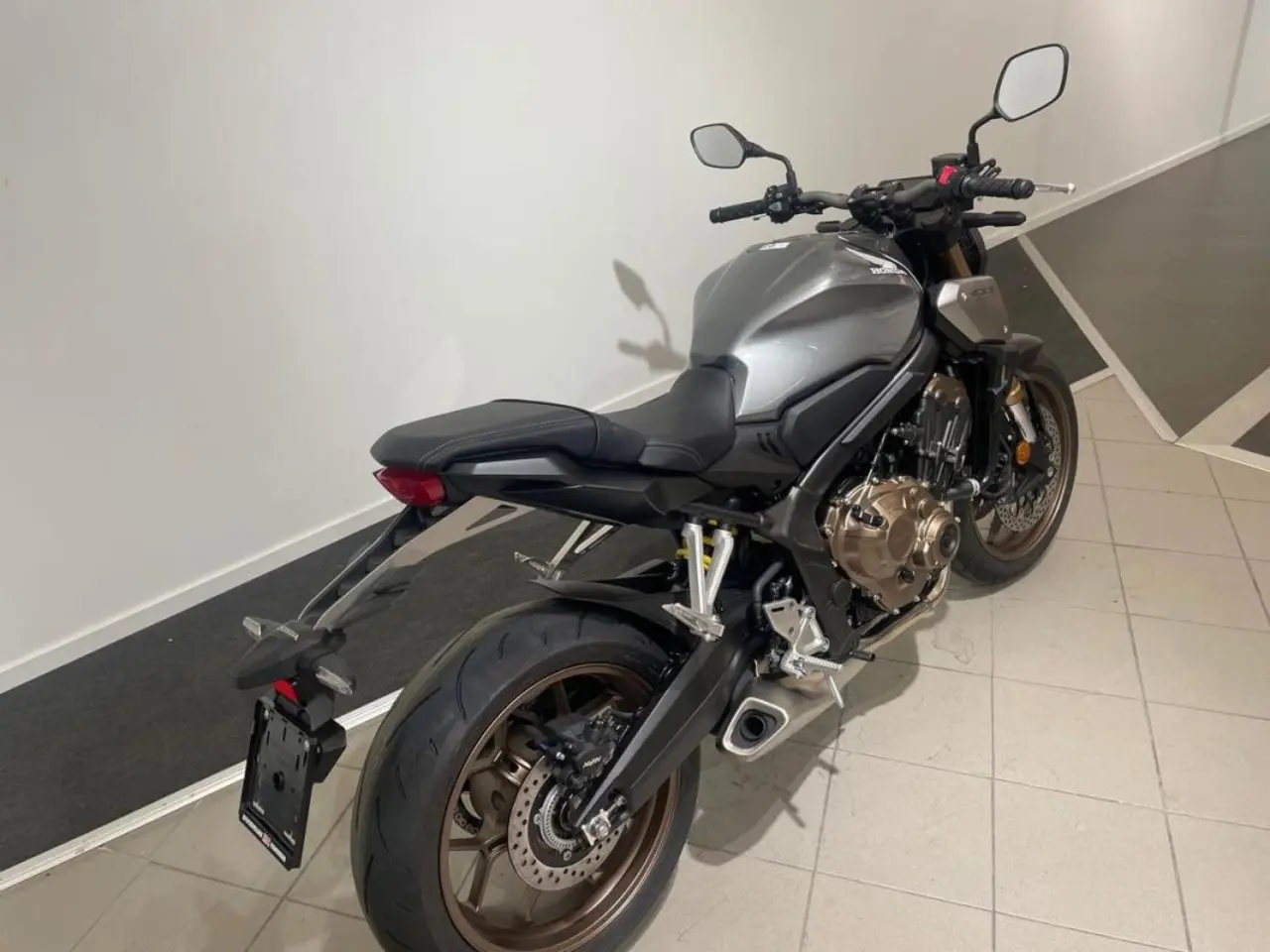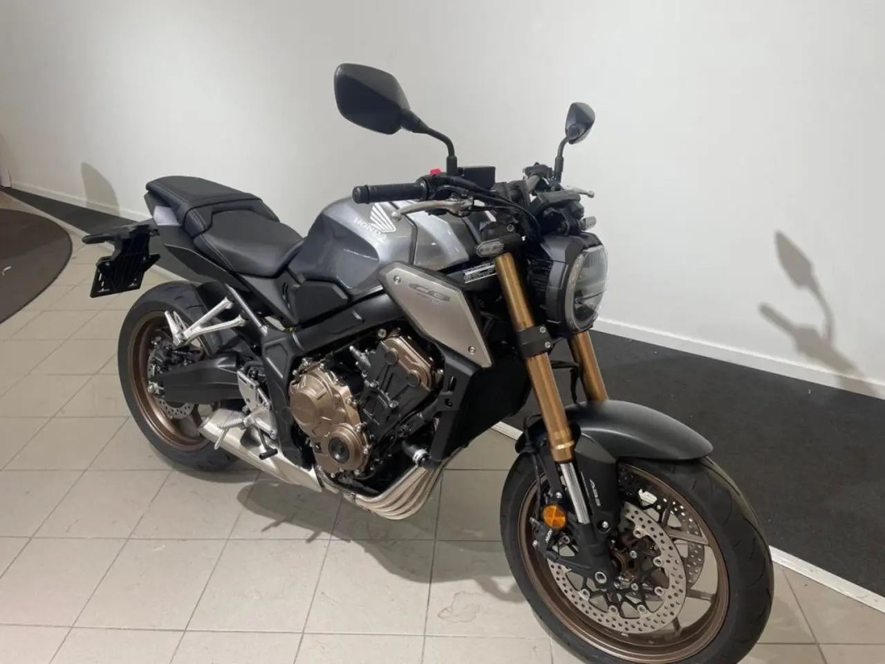 OBS! Vi har gråmetallic, Hondas populära mellanklasshoj CB 650 R i Neo Sports Café-serien är en naken modell med minimalistisk design och mycket attityd. Maskinen är utrustad med en 41 mm Showa inverterad SFF-BP-framgaffel, assisterande slirkoppling, digital instrumentskärm och USB C-uttag under sadeln. Till 2022 finns hojen i fyra färger med det nya alternativet Sword Silver Metallic.