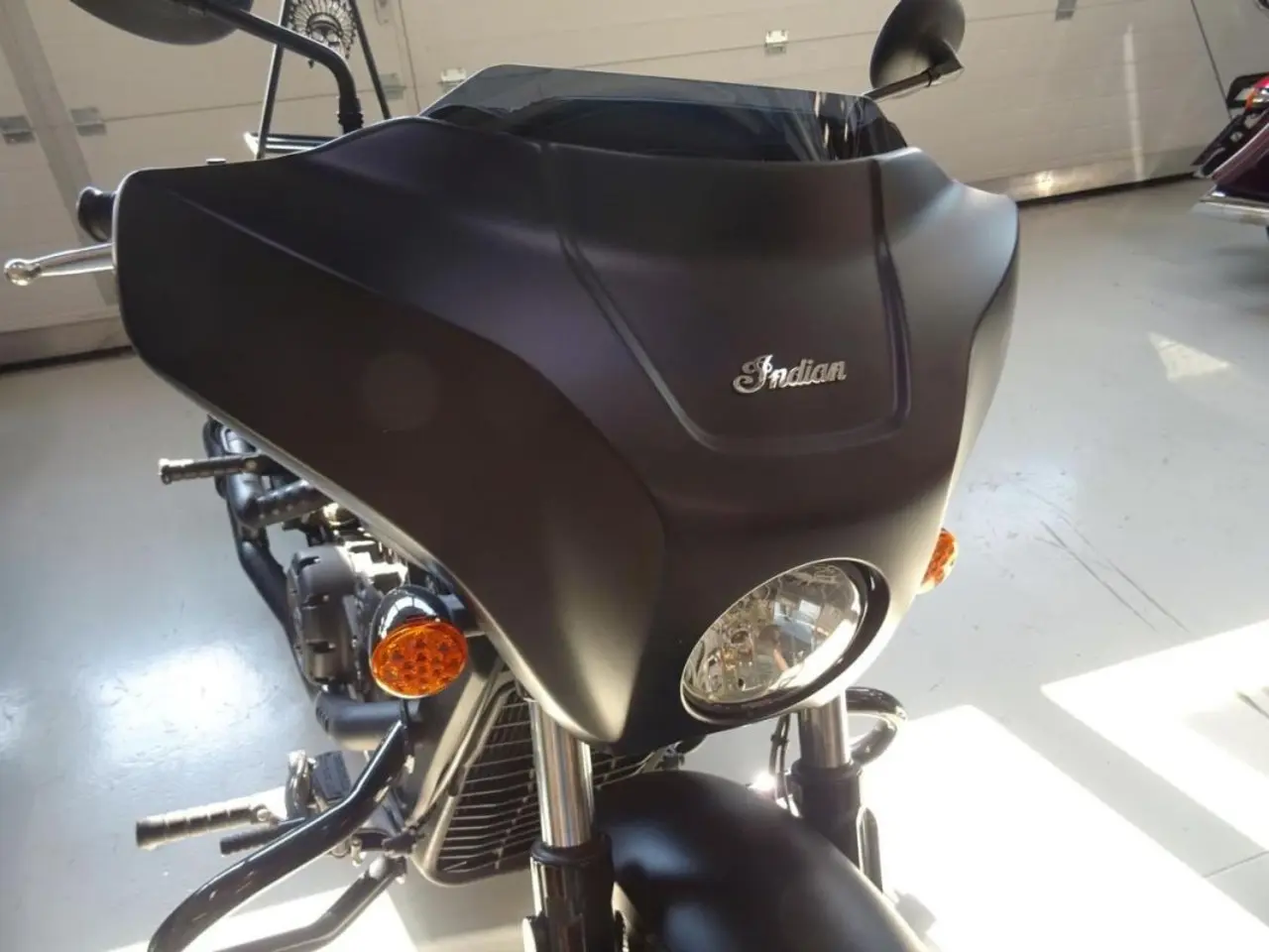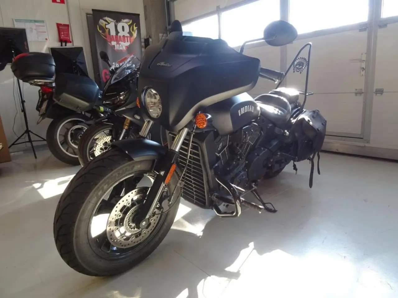 En fin custom hojsom fungerar lika bra att pendla med som att ta den lite längre touring turen. Denna hoj är extra utrustad med massor av bra tillbehör som Indians batwing kåpa och kåpväska, Slip on fråm HPCORSE med väldigt bra ljud, Lejonkulan väska med snabb fäste, passagerarsadel samt fotpinnar och fästen, custom sissy med pakethållare, samt extra framflytt.