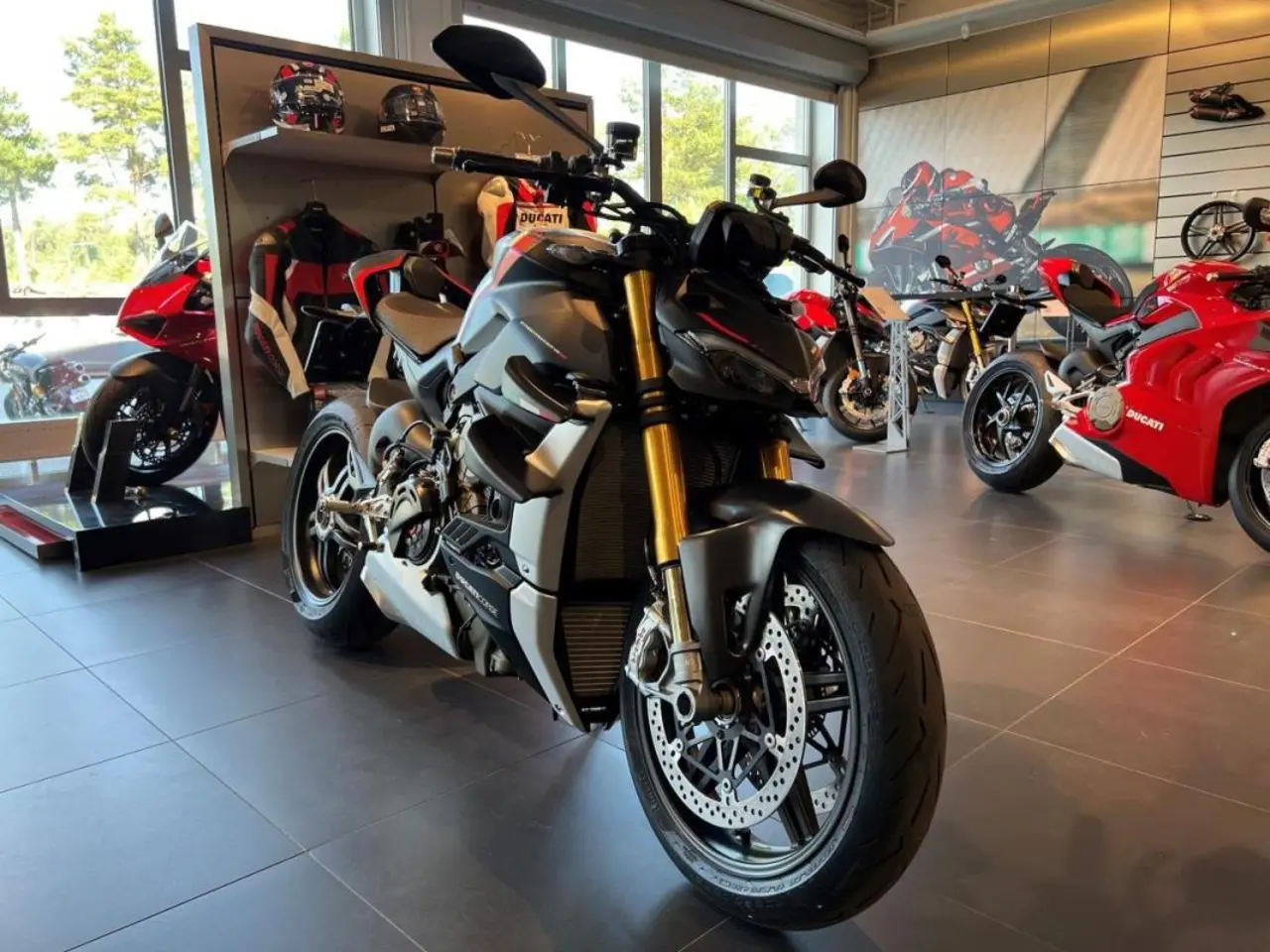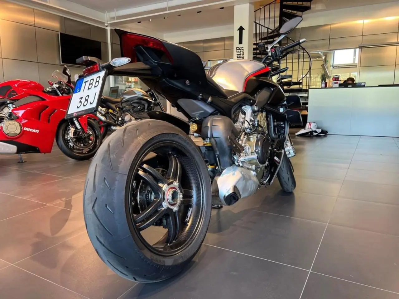 TBB38J Ducati Streetfighter V4 SP med endast 40 mil på mätaren i originalutförande.