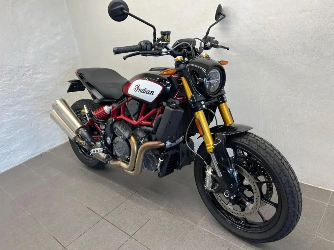 Indian FTR1200 S i perfekt skick! Utrustad med Akrapovic slip on och tailtidy, ny servad samt ny bromsvätska.