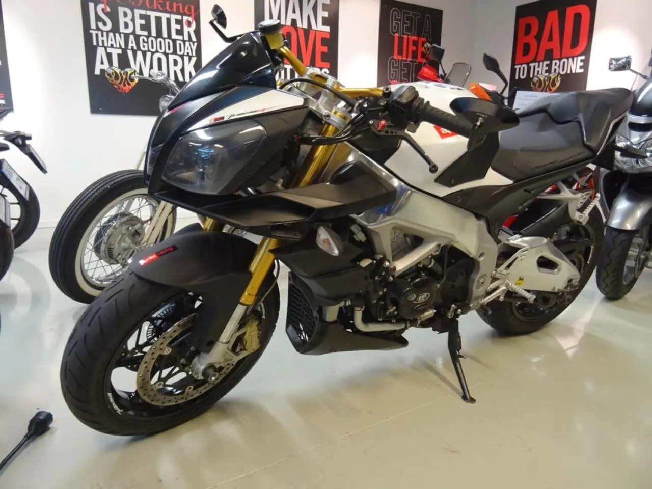 En snygg streetfighter som fungerar lika bra att pendla med som att åka den längre touring turen. Den är extra utrustad med tailtidy, krash puckar, Puig styrends backspeglar, USB uttag, Techspec sido tankskydd, Aprilia tankskydd, Ride it levers.