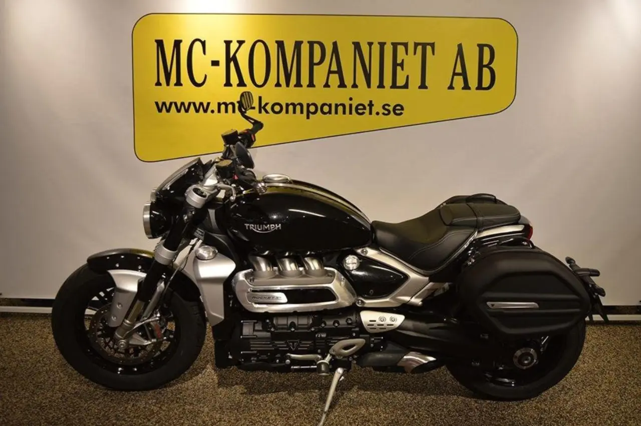 Mycket snygg och maffig Rocket 3 med touringutrustning. Endast 1 ägare samt första servad utförd 220413. Fabriksgaranti tom 2023-10-04. Kommer standard från fabrik med körlägen / farthållare / keyless / brembo mm. Vi tar gärna inbyte och hjälper till med finansiering. Vill du ha din nya hoj hemlevererad så löser vi även detta. Vi har en stor tillbehörsavdelning för både dig och din mc. Välkommen in till oss på MC-Kompaniet! 3 r Rocket3 rocket3r