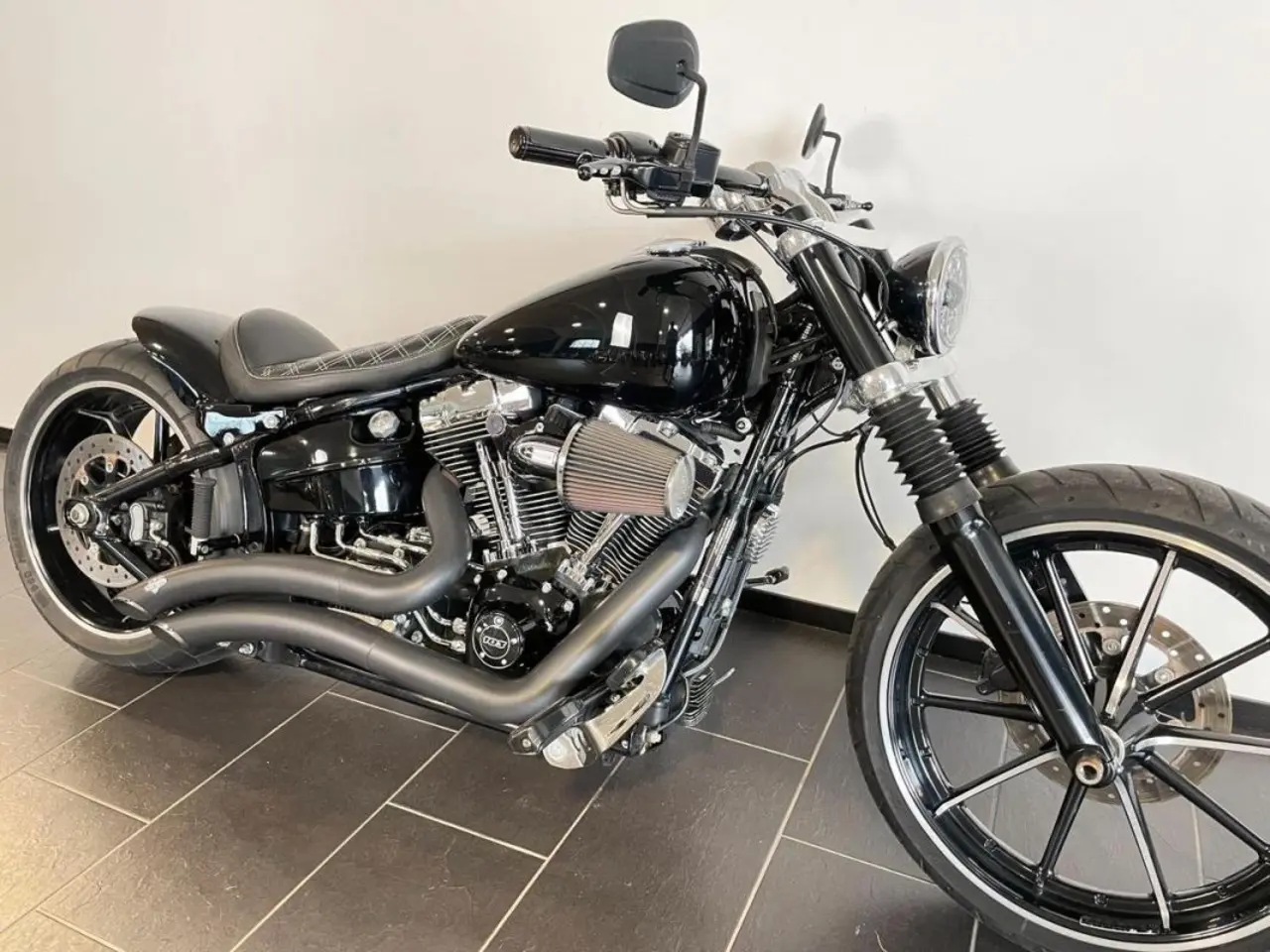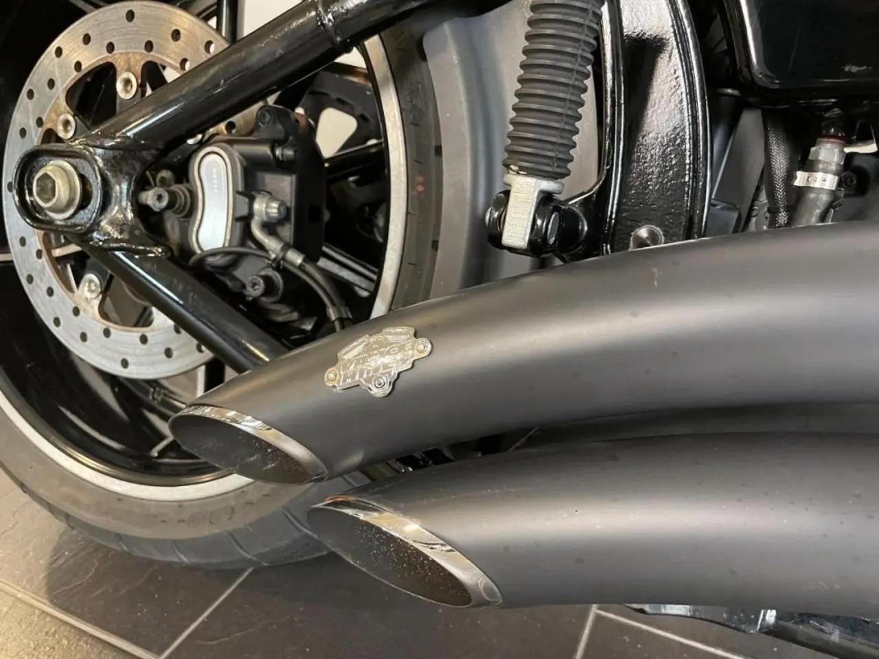 (I158) Riktigt snygg Breakout i snygg blank svart, utrustad med slimmad backskärm med integrerade blinkers och bromsljus. Givetvis med fullt buller från Vance & Hines. Lika kul på vägen som Soft tail FXBRS och FXSTB Night train. Från 1852:-/månaden vid 20% kontantinsats (43760 kr). Vi gillar inbyten och räknar gärna på ett mellanpris. Ring eller mejla oss för vidare information. JUST NU FINANS MED 4.95% RÄNTA! BIKEMAN SKICKAR DIN NYA MC HEM TILL DIG! inom Sverige. (Gäller ej Gotland eller vid inbyte) .Levereras nyservad och med 6 månaders garanti.