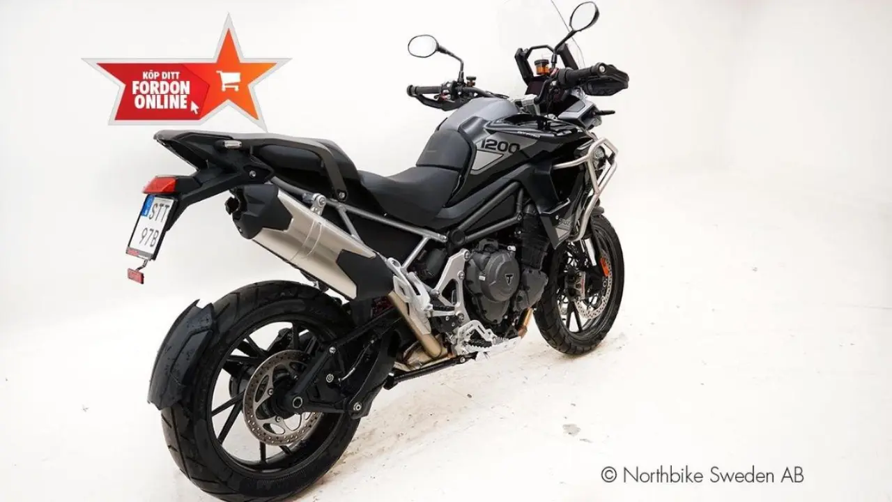 Triumphs stora nyhet inför 2022 är Tiger 1200. Med Motorn från Speed triple RS 1200 och ram samt övriga komponenter inspirerat från lillebror tiger 900 så kommer denna ta äventyrssegmentet med storm . Välj mellan 5 olika modeller ( GT, GT PRO , GT Explorer , Rally PRO eller Rally Explorer ) pris från 208 900kr. GT Pro är en smidig och nättare Explorer ( likt GS, GSA på... BMW ) med 20 liters tank. 19” framhjul, gjutna aluminiumfälgar. 200 millimeters fjädringsväg.