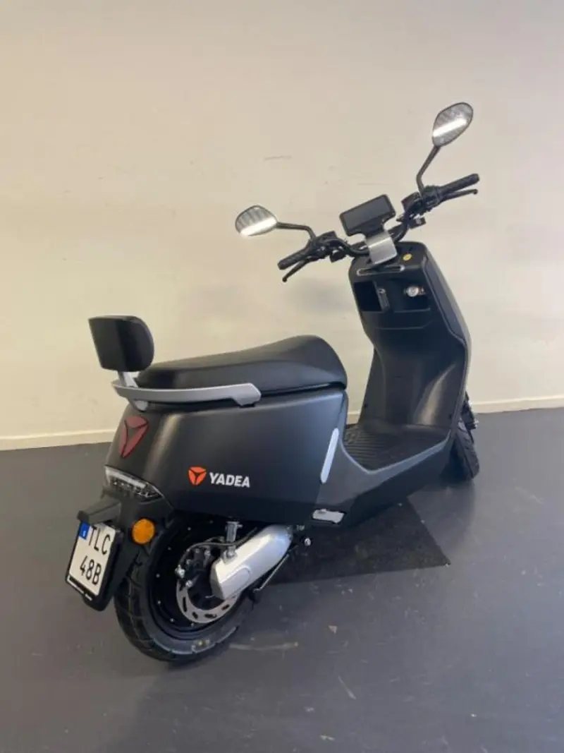 Med dess stilrena design finns det gott om plats för både förare och passagerare. Motorn är tyst och stark och har två effektlägen. Det högkvalitativa Panasonic batteriet är placerat under fötterna med en låg tyngdpunkt och jämn viktfördelning som ger ett välbalanserat fordon. Battericellerna har en talk-back funktion som i kombination med den tillhörande smartladdaren optimerar batteriets livslängd. Elsystemet och komponenterna är dessutom designade för att klara vårt nordiska klimat med regn salt och kyla. Yadea G5 har 12 tums hjul som ökar komfort och säkerhet. Det finns även ett USB-uttag för laddning av t.ex. smartphone och det rymliga hjälmfacket är placerat under sadeln.