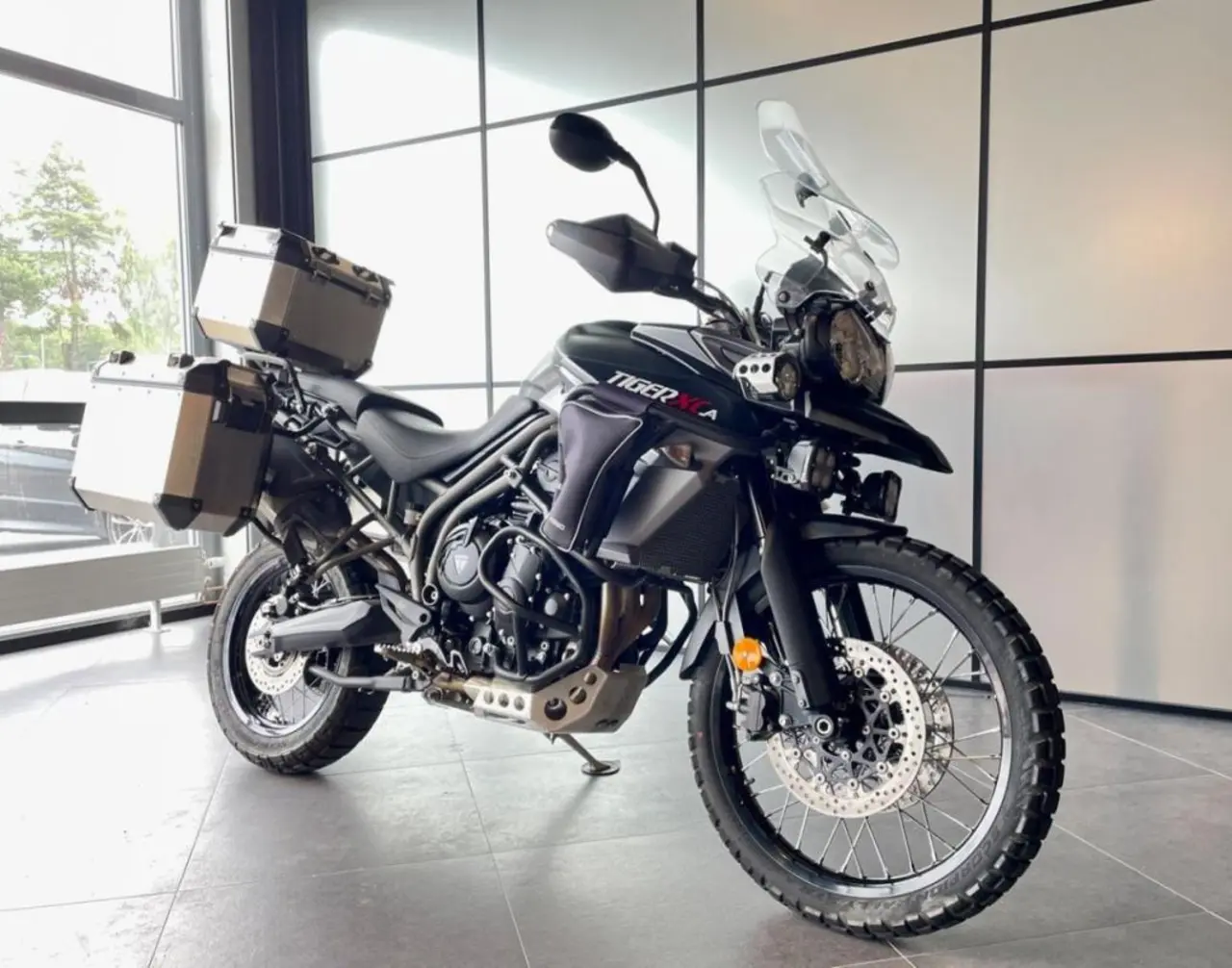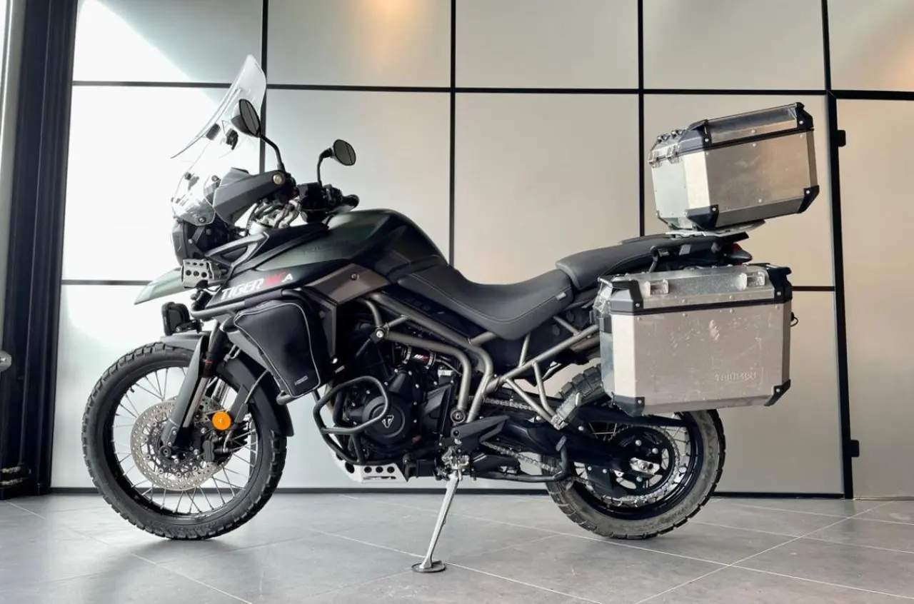 Tiger 800 XCA är ett riktigt bra alternativ för såväl korta och långa resor. Detta ex är extrautrustat med Denali-lampor - 3 aluminiumväskor - kraschbågar - högre ruta och kraschbågsväskor från Heed.