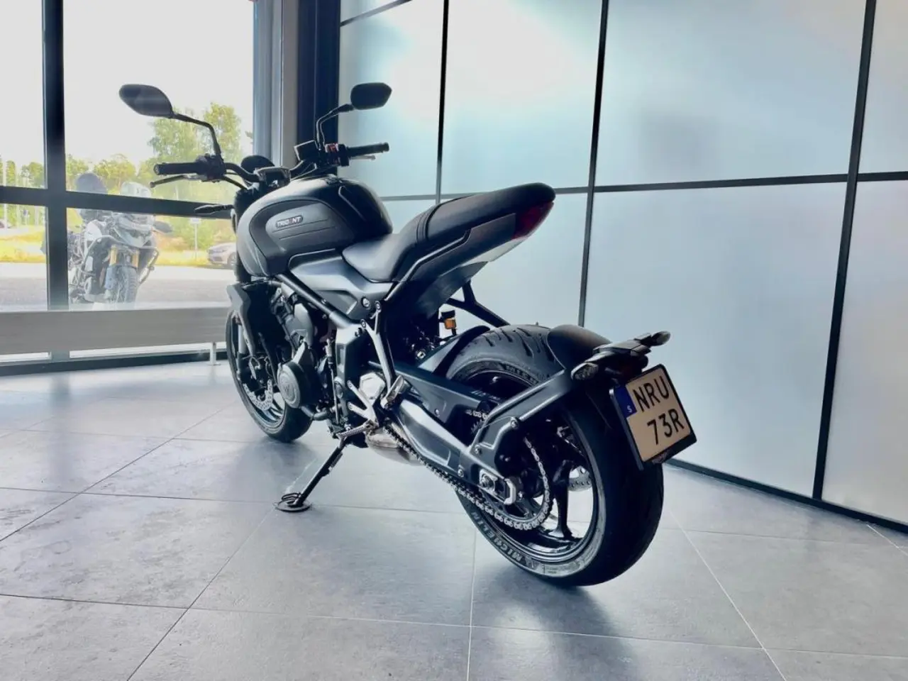 189kg lätt med en ny trecylindrig motor med 80hk och 64nm vrid. Ny TFT-display med integrerad vägbeskrivning via ”My Triumph” connectivity-systemet (tillval), traction control och ABS. Som tillval finns även handtagsvärme och Triumph Shift Assist mm. 1600 mils serviceintervaller. Den här hojen passar både den nya och den erfarne föraren. Går att få A2-kompatibel om så önskas.