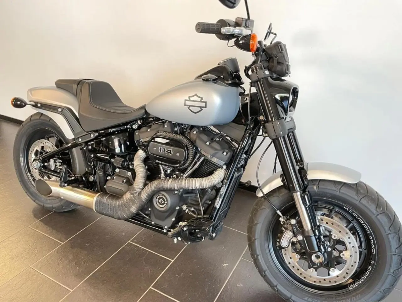 (I180) Riktigt fin Fat Bob i snygg silver som endast rullat 650 mil. Utrustad med buller från Kerker och uppdaterade risers för bättre körställning. Givetvis med ABS-bromsar och nyckelfri körning samt larm. Denna softail Fat Bob är lika kul att busa med som FXBB och FXBBS samt FXDF. Från 1777:-/månaden vid 20% kontantinsats (41980 kr). Vi gillar inbyten och räknar gärna på ett mellanpris. Ring eller mejla oss för vidare information. JUST NU FINANS MED 4.95% RÄNTA! BIKEMAN SKICKAR DIN NYA MC HEM TILL DIG! inom Sverige. (Gäller ej Gotland eller vid inbyte) .Levereras nyservad och med 12 månaders... garanti.