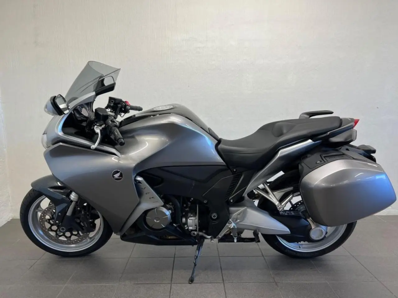 Honda VFR 1200 i fantastiskt skick! Silver metallic med sidoväskor och slip on. 2400 mila service inkl ventiljustering nyligen utfört.