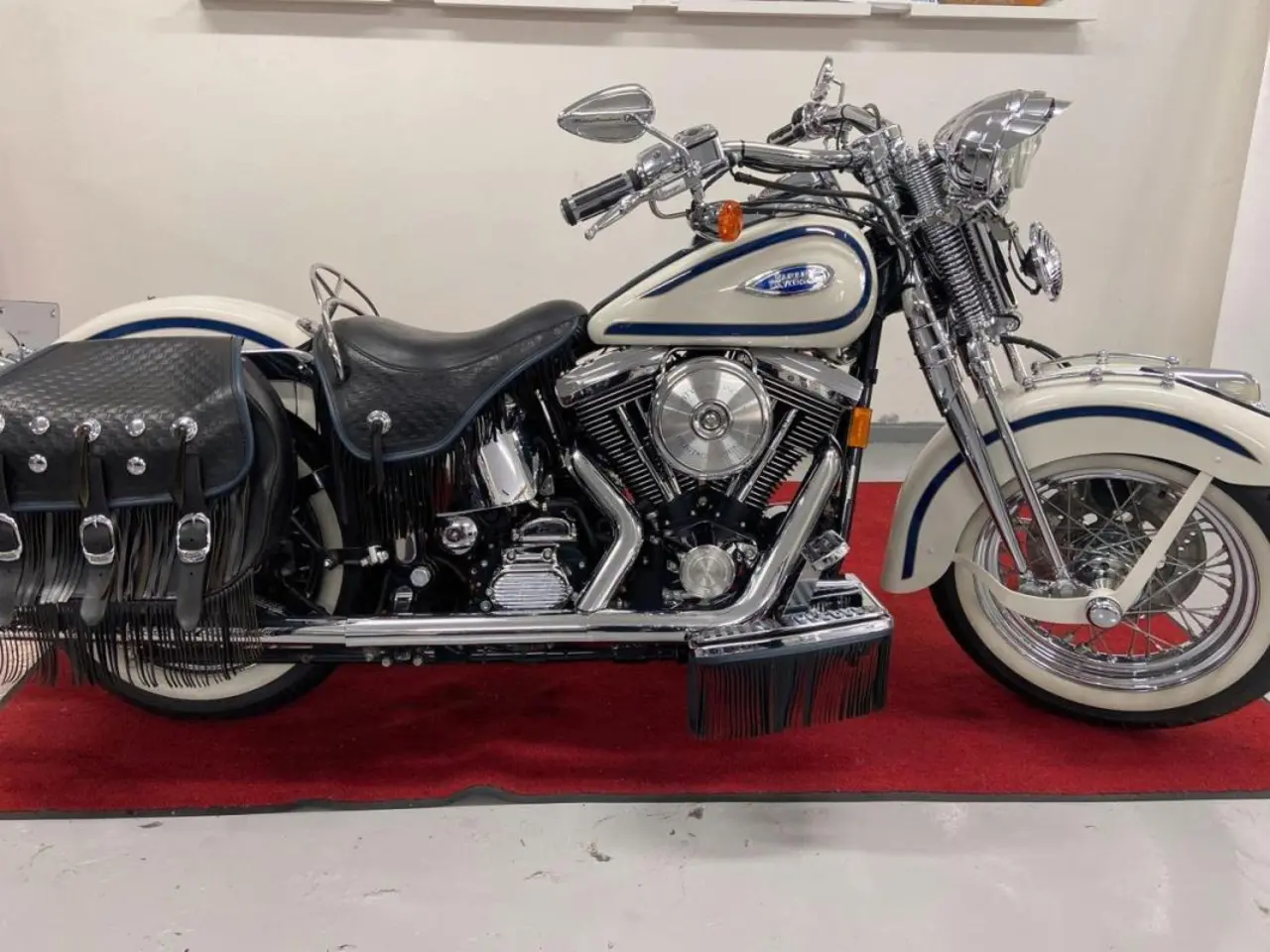 En Heritage springer från 1997 som endast rullat 1580 mil! Skicket är som nytt! Kommer levereras Nybesiktigad och Nyservad! Nya däck med vit sida Orginaldelar medföljer Obs, samma ägare sen 1999 då den rullat 1200 mil BYTE? mejla oss på:thomas@1903workshop.com Eller ring oss på:0728-315-315