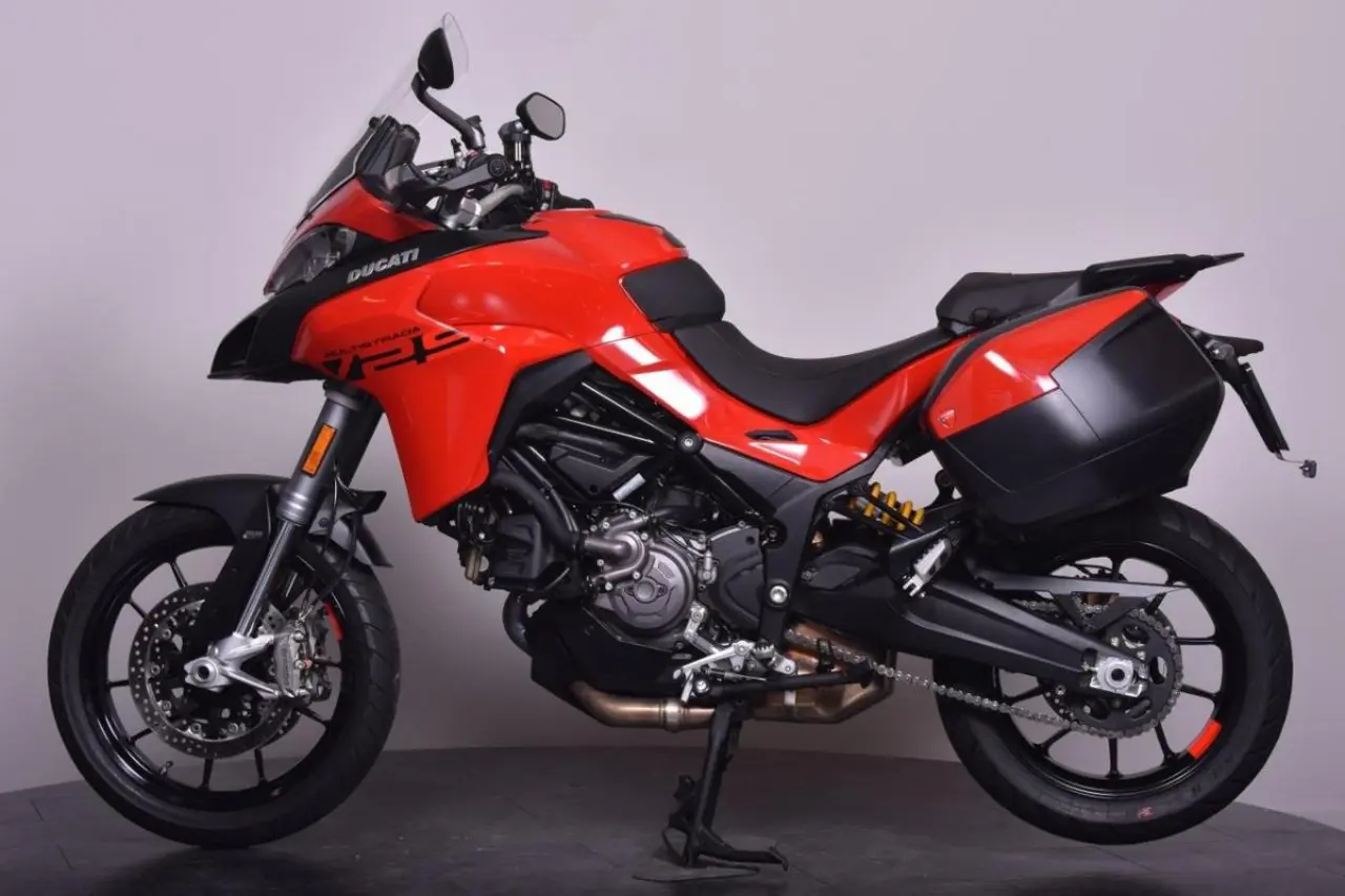 Nyinkommen Multistrada V2 S Travel i mycket fint skick, endast 324 mil ! *Nästa besiktning senast: 2026-06-30 *Senaste service: 2022-07-07 / 104 mil. *Nästa service: 2023-07-07 / 1500 mil. *Effekt: 112hk *Fabriksgaranti t.o.m. 02/06/2026 *Standardutrustning: Ducati skyhook fjädring, DTC (Ducati Traction Control), VHC (Vehicle Hold Control) Körlägen: (Urban/Enduro/Touring/Sport) Powermodes, Automatiskt avstängningsbar blinkers, förbrukning blandad körning 5, 9L/100km. Utrustningsnivå: Travel: Färganpassade sidoväskor, centralstöd. *Mc:n har genomgått ett inbytestest utan anmärkningar. *Bra att veta:... Framdäck 70% kvar. Bakdäck 70% kvar. Fint skick! Instruktionsbok- servicebok (diigtal)och extranyckel finns. Detta fordon är tillgängligt för onlineköp hos Bike Trollhättan. Kostnadsfri hemleverans ingår vid onlineköp. (gäller ej transporter norr om Gävle, samt Gotland. Bor du där kontakta oss för smidig lösning.) Med din enhet väljer du avbetalning eller kontant. Ansök tryggt och enkelt med BankID. Köpet är inte bindande för någon part och du betalar inget förrän du har haft kontakt med säljare på Bike Trollhättan. Filtrera dig till ditt fordon på vår websida här: https://https://www.biketrollhattan.se/content/89-nya-lagerfordon-att-kopa-online#/ (ducati mulitstrada multi mts v2 v2s 950 v4 v4s msv2)