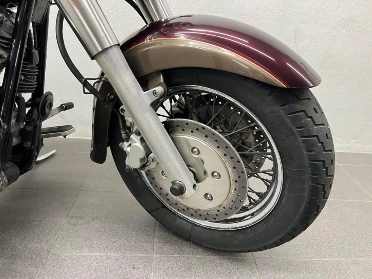 Går fint i motor och låda, dvs inga mekaniska fel utan endast kosmetiskt. Den är inte lagd eller liknande utan har antagligen stått ute en del. Lite rost på diverse ställen, tex fälgar och skivor, lite ärg på motorblock och styrkrona samt bromsbehållare. Helt okej i lacken, inga bulor eller större skador.
