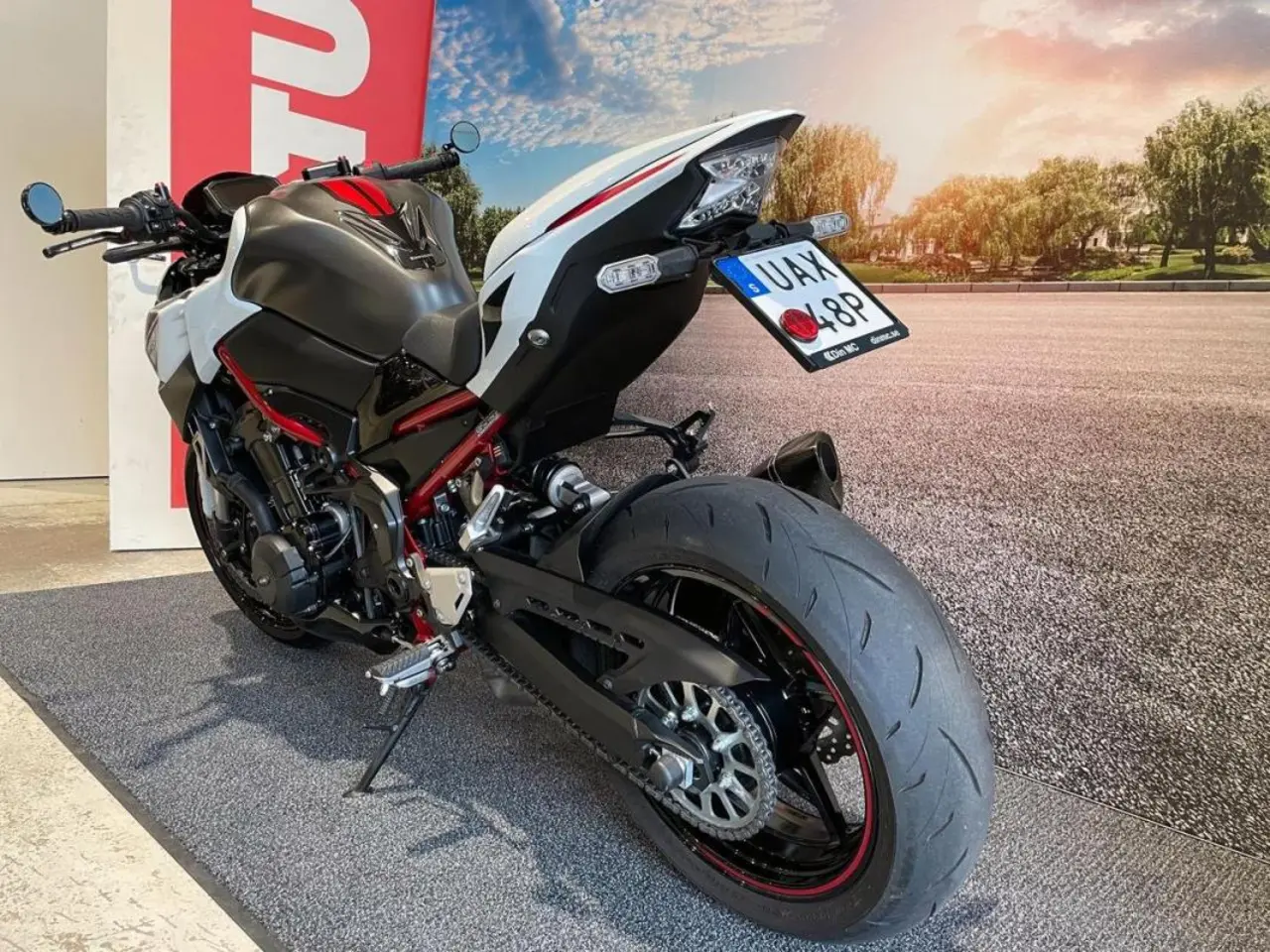 Kawasaki Z 900 Pearl Robotic White 2022 som är i performance utförande.