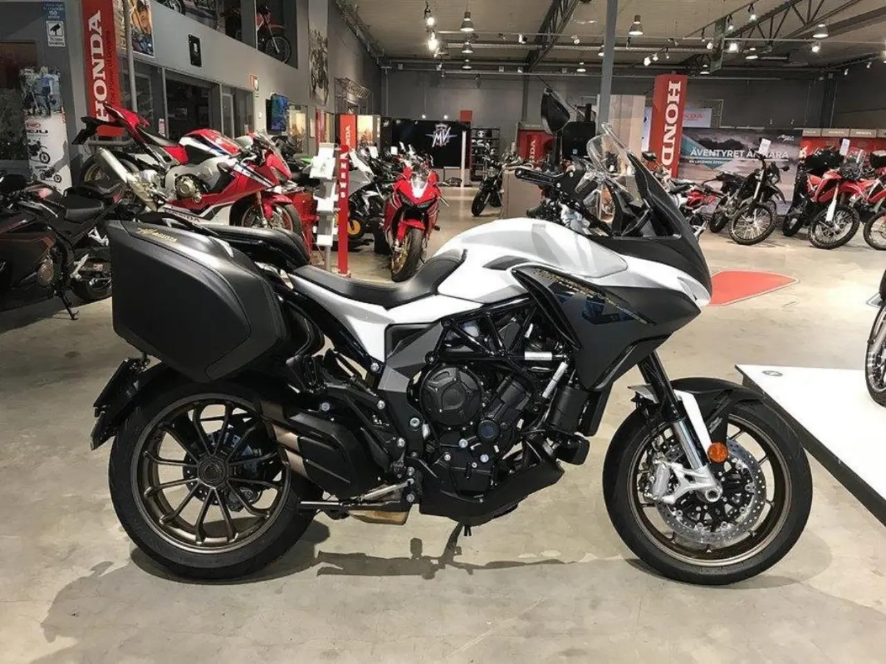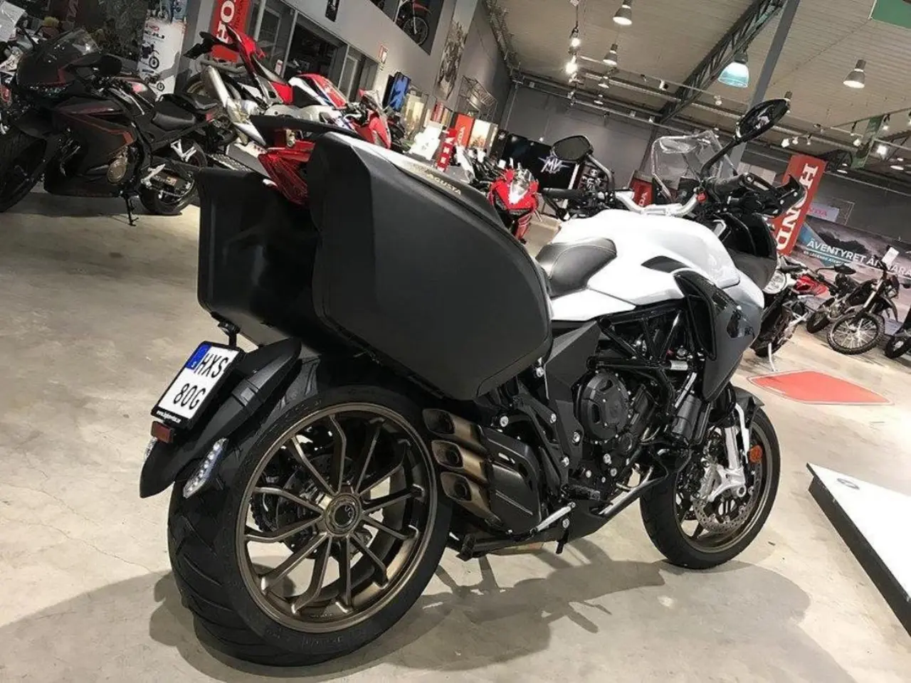Fabriksgaranti till: 2022-06-05. Levereras nyservad. Utrustad med: Sidoväskor, TC antispinn i flera lägen, två kanals Bosch 9 plus ABS, 83Nm. MV Agusta Turismo Veloce Lusso 800 ABS Sport Touring Adventure Multistrada Finansiering Vi har nöjet att kunna erbjuda denna MV Agusta Turismo Veloce Lusso 2019. Vi byter in er mc, ATV eller moped. Varmt välkomna önskar vi på Ahlqvist motorcyklar / Honda Mc Center Göteborg. Ring oss på 031-7466070 (vi reserverar oss för felskrivningar) Video länk till hojen: https://https://www.youtube.com/watch?v=N0NL7WYjnKY