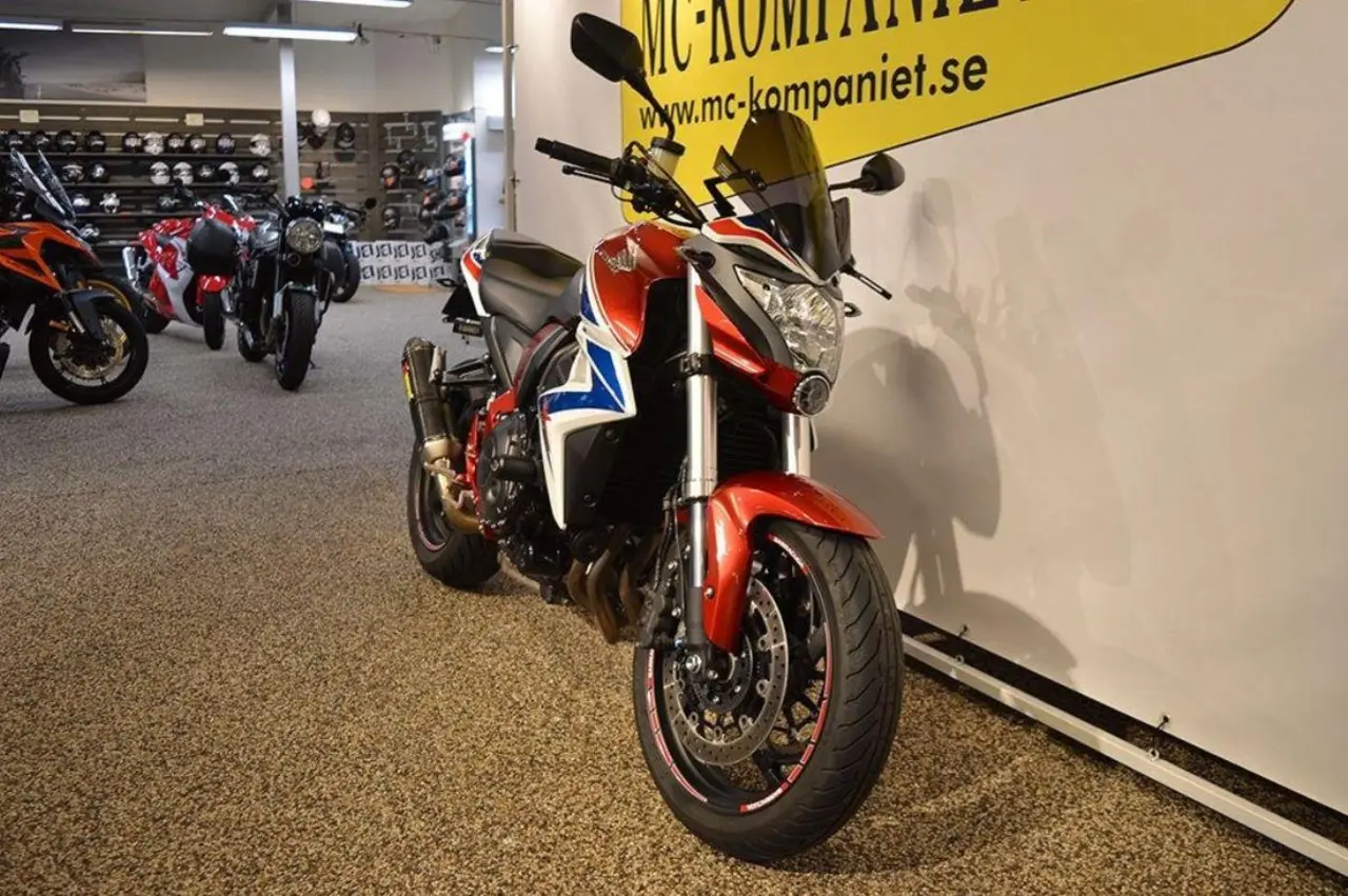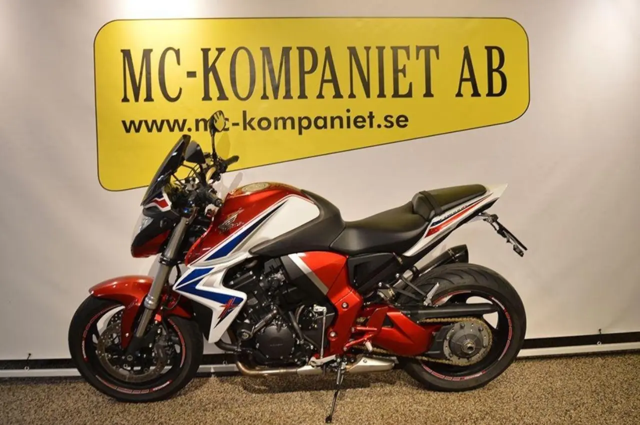 Snygg nakedbike från Honda. Nyservad av oss samt välservad sedan tidigare. Originalsystem medföljer. Vill du ha din nya hoj hemlevererad så löser vi även detta. Vi har en stor tillbehörsavdelning för både dig och din mc. På fordon yngre än 5 år lämnar vi 3 månaders garanti, på fordon äldre än 5 år lämnar vi 1 månads garanti. Välkommen in till oss på MC-kompaniet! Sök CB1000R CB1000 CB 1000 R RA