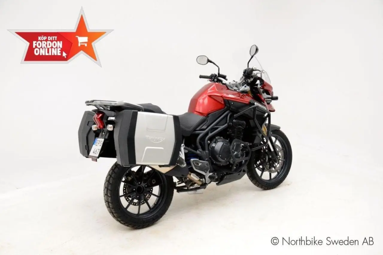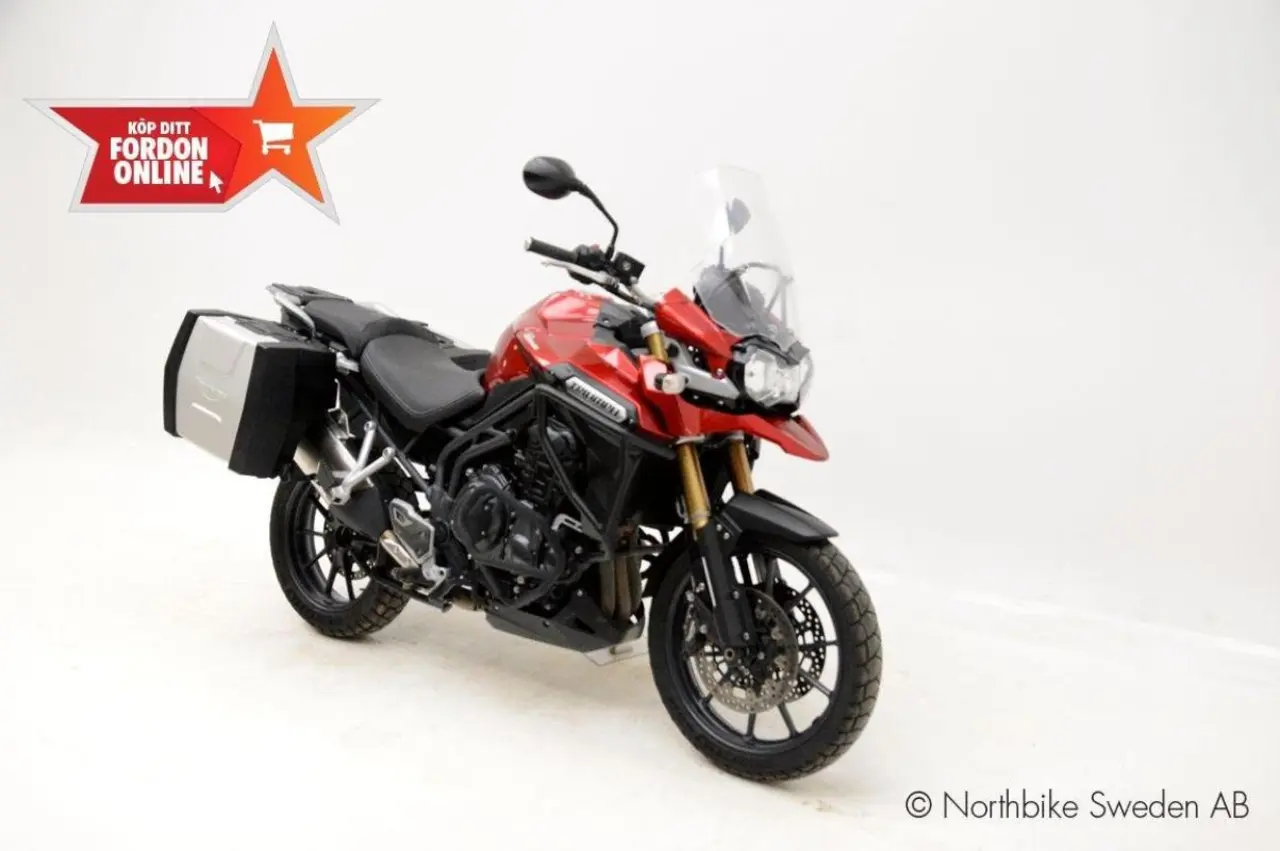 Fin Tiger 1200 Explorer utrustad med Triumphs original sidoväskor.