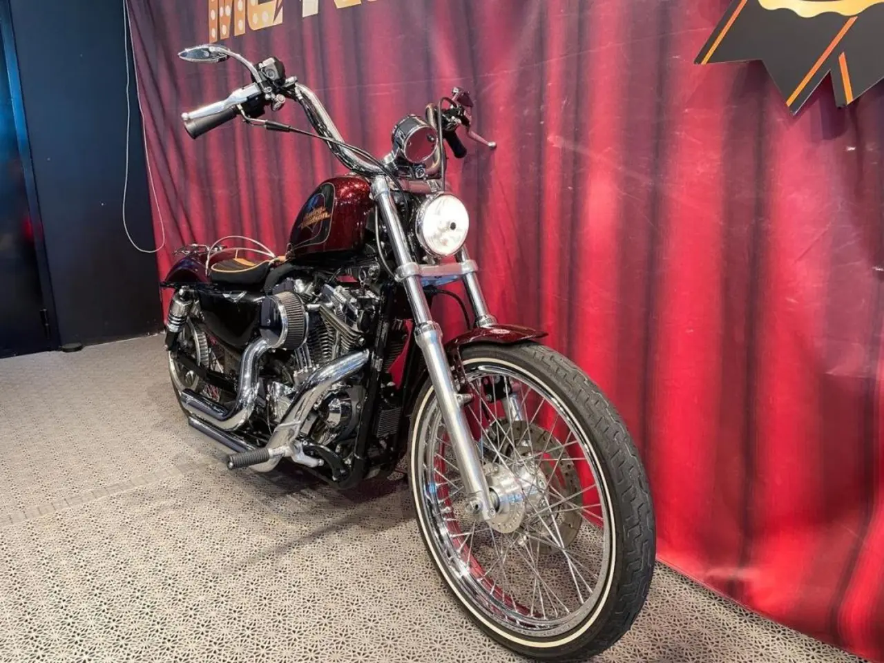 En speciell Sportster Seventy Two XL1200V vilken glittrar fint i solen med den snygga lackeringen och krom. Ekerhjul och däck med vit sida ger ett läckert utseende! Miniaphäng och låg sadelhöjd! Solosadel med krombåge och kromad pakethållare! Bytta dämpare för gött muller.