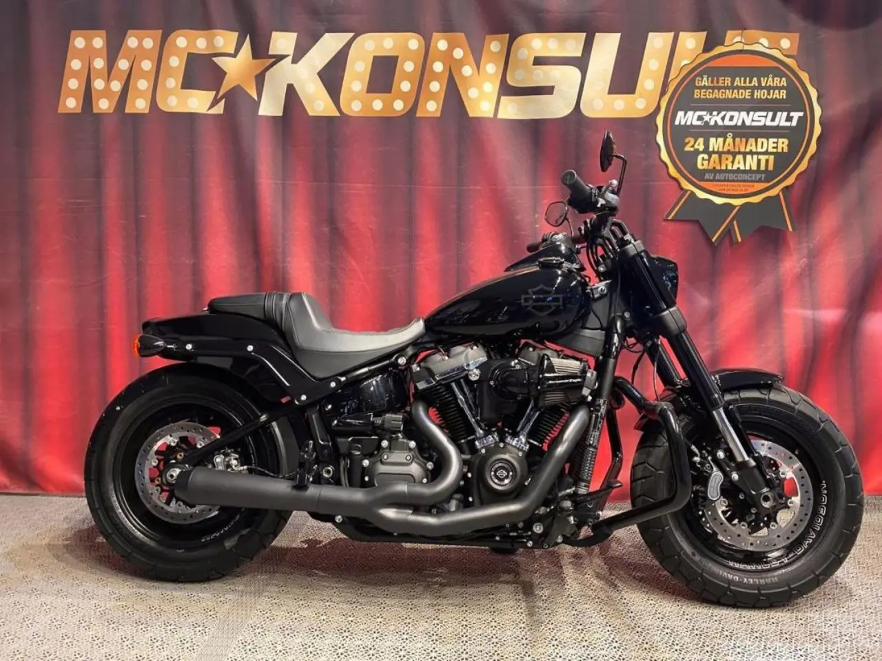 FAT BOB 107cui med rätta stuket. Utrustad med bland annat Screamin Eagle heavy breather, bänkkörd med Powervision (mappningsprogram), Screamin eagle tourqe Stage II kam, Cobra 2-1, Sidoskylt . Senaste Service är gjord i vår verkstad 21-11-05 vid 7382km. Tack vare kammarna går den bättre än en 114 och är väl värd en provtur! Givetvis 24 mån garanti via vår samarbetspartner Autoconcept.
