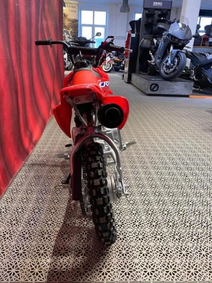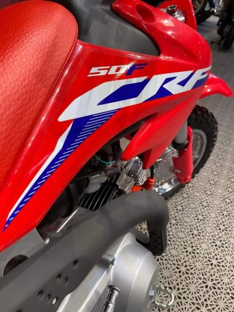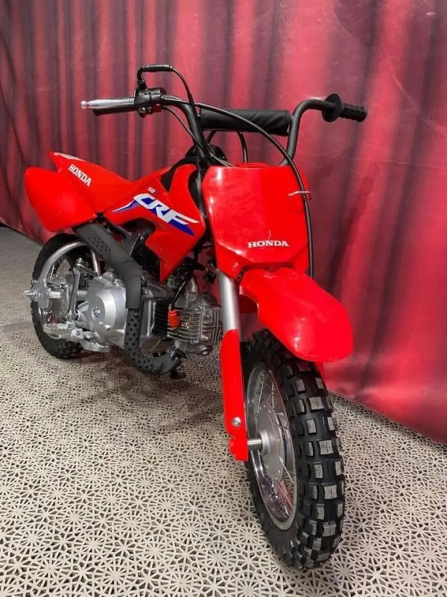 Honda CRF50F är den perfekta nybörjarhojen för barn som vill prova på motocross. Den lilla maskinen har en körglad och driftsäker luftkyld fyrtaktsmotor på 49 kubik med praktisk automatkoppling som underlättar att komma igång med körningen. Nybörjare brukar också känna sig trygga med de små 10-tumshjulen och den låga sadelhöjden.