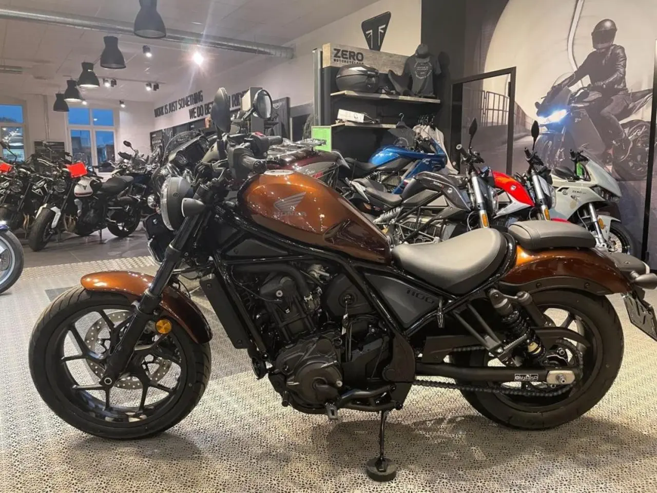 Hondas tuffa CMX1100 Rebel är en bekväm customhoj med mycket körglädje och attityd, som snyggas till med ett nytt färgalternativ till 2022. Motorn är en kraftfull parallelltwin på 1084 kubik med härligt avgasljud och modern teknik som antispinn, Wheelie Control, farthållare, tre förinställda körlägen och elektronisk gasreglering. Chassit bygger på kvalitetskomponenter som en 43 mm cartridge-gaffel, dubbla bakre stötdämpare med separat gasbehållare och radialmonterat fyrkolvsok framtill. All belysning består av LED-lampor och instrumenteringen har en negativ LCD-display. Modellen finns även med Hondas populära 6-växlade dubbelkopplingsväxellåda (DCT).