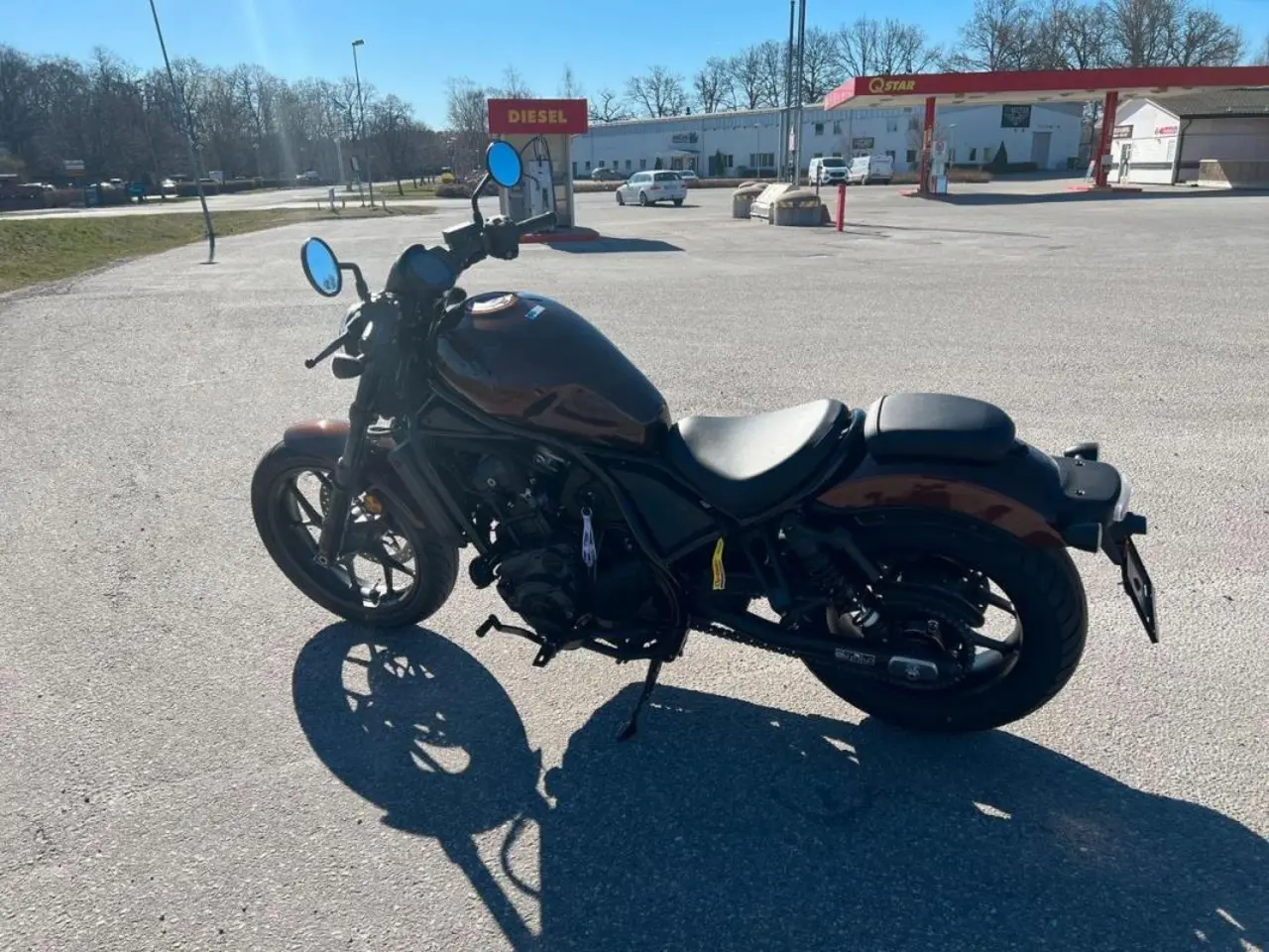 Designmässigt är Rebel 1100 en modern, minimalistisk och kaxig bobber. Ovanpå de feta däcken sitter stilrena plåtskärmar och den klassiska runda strålkastaren kompletteras med modern teknik som LED-lampor, digital instrumentering och laddningsuttag för USB C i förvaringsutrymmet under sadeln.