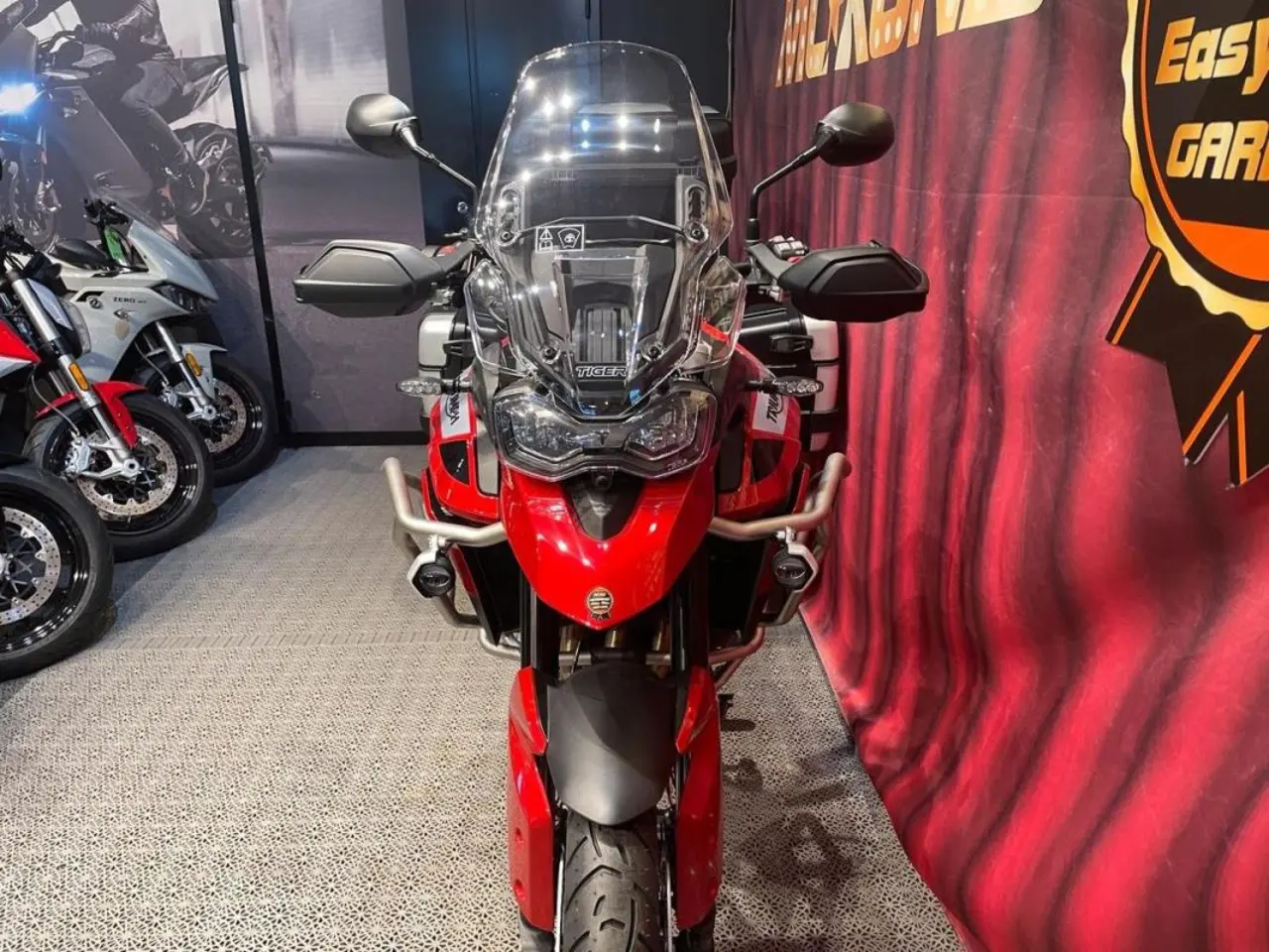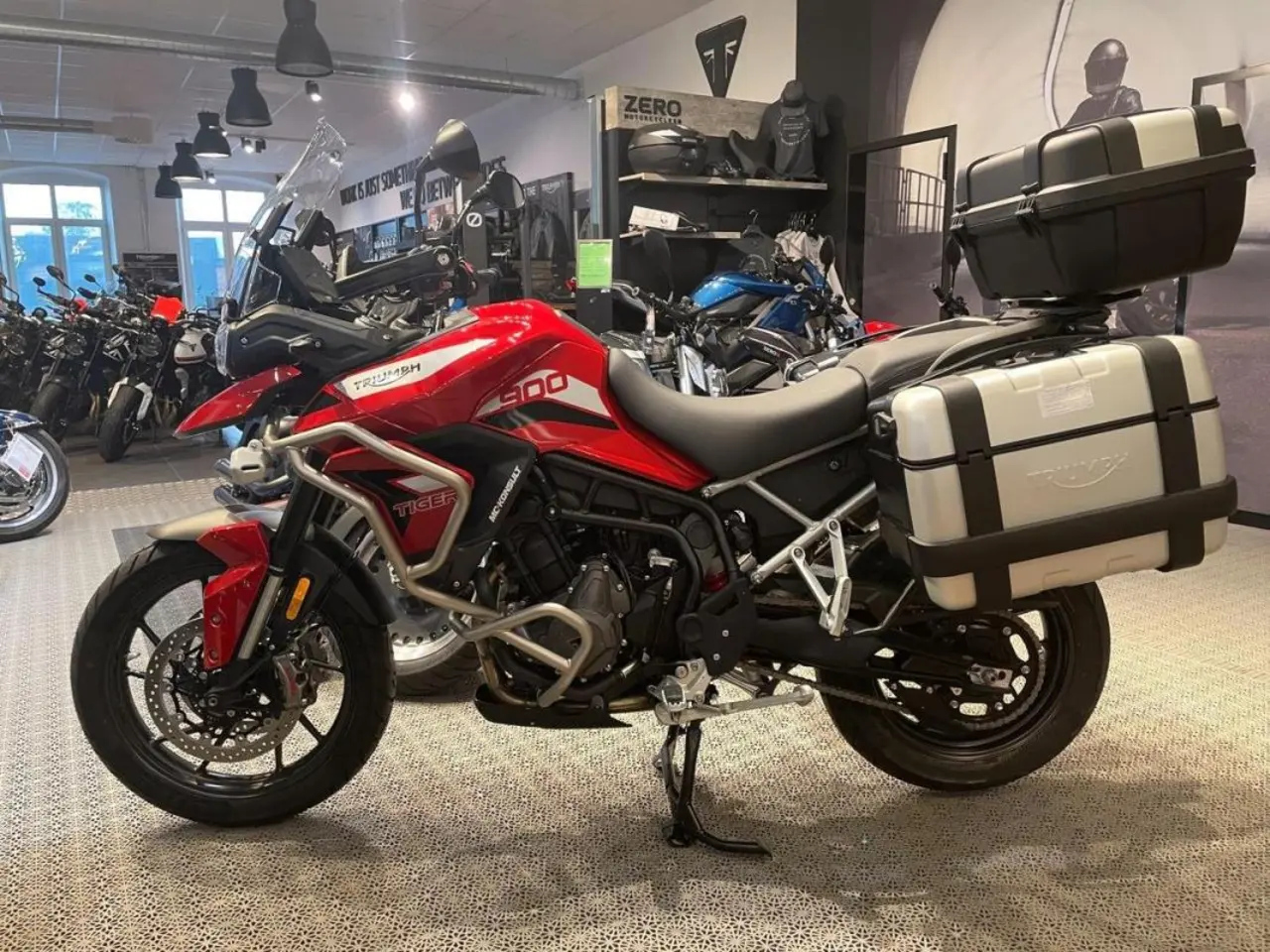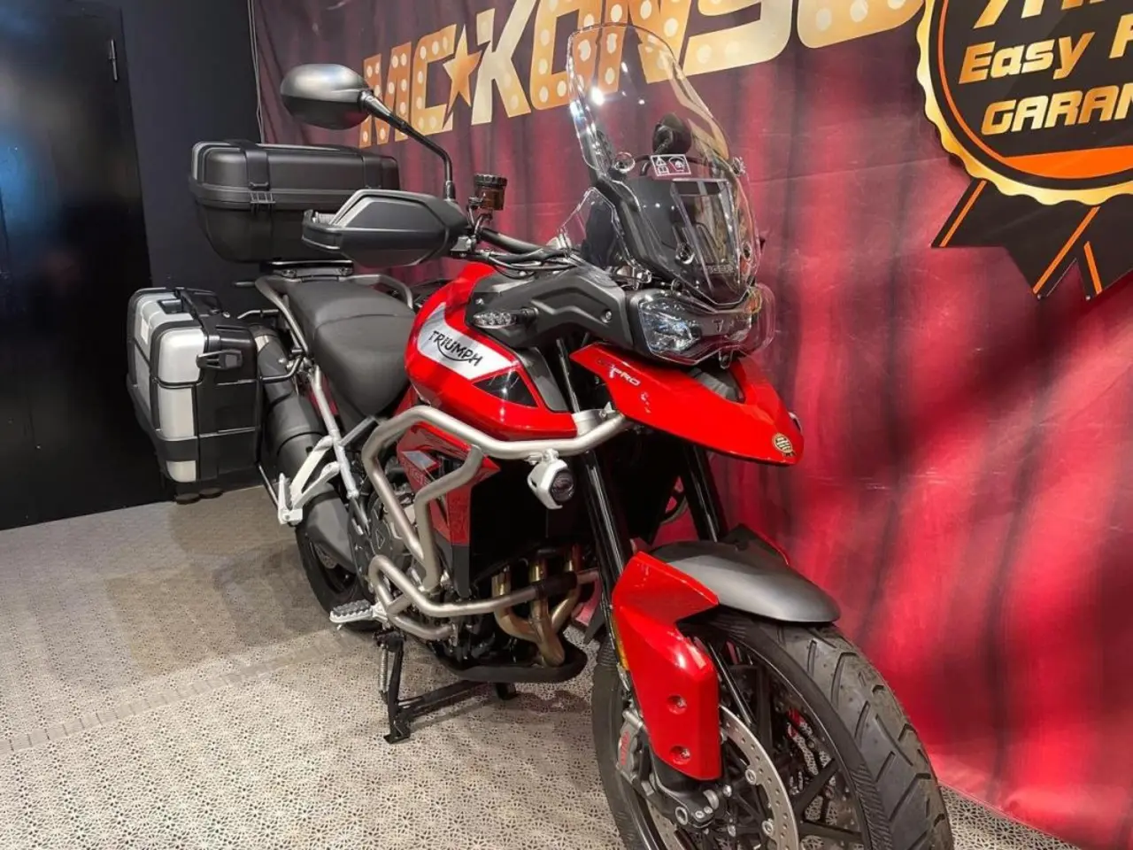 Vi har en fabriksny röd Tiger 900 GT Pro -2023 i butiken för leverans nu! Den har stått i vår utställning och är utrustad med Trekker sidoväskor 33L/46L och Top-Box 52L. Motorbågar och skyddsbågar på tanken samt Tank Pad. En komplett Äventyrs-Tourer! Justerbar sitthöjd 820-840mm!